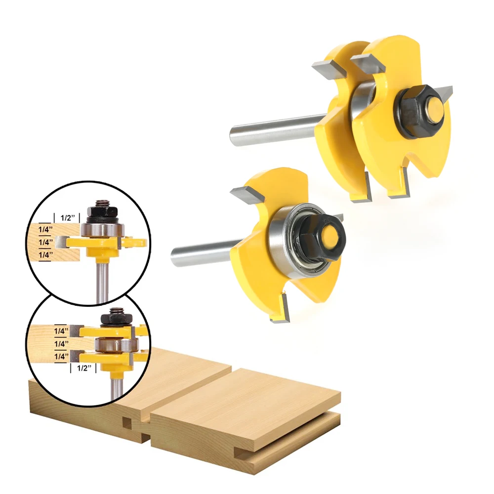 2 шт. 3/4 "в наличии 1/4" хвостовик Язык и паз маршрутизатор Набор бит 3 Зубья Т-образный фрезерный станок для деревообрабатывающих инструментов