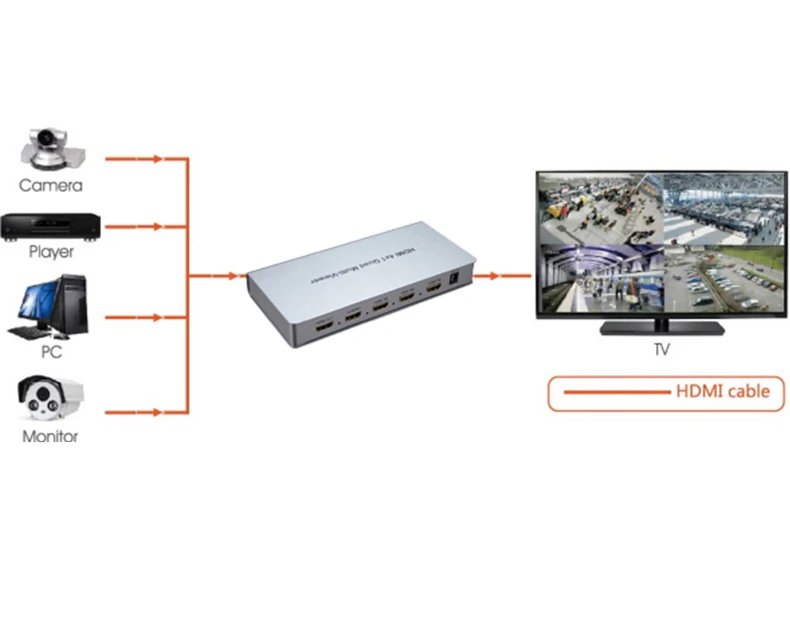 Hdmi-совместимость 4x1 Quad multi-просмотра высокая производительность с четырьмя HD экраном сегментации и бесшовного переключателя выхода. Он может отображать цифровой видеосигнал 4HD на одном экране и имеет различные сегменты видео, бесшовное переключение 4 HD входного сигнала синхронно. Методы управления переключателем являются гибкими, их можно переключать с помощью кнопки и ИК-управления. Это очень практичный и стабильный переключатель и прост в установке, может использоваться в основных проектах, конференц-залах и других местах.