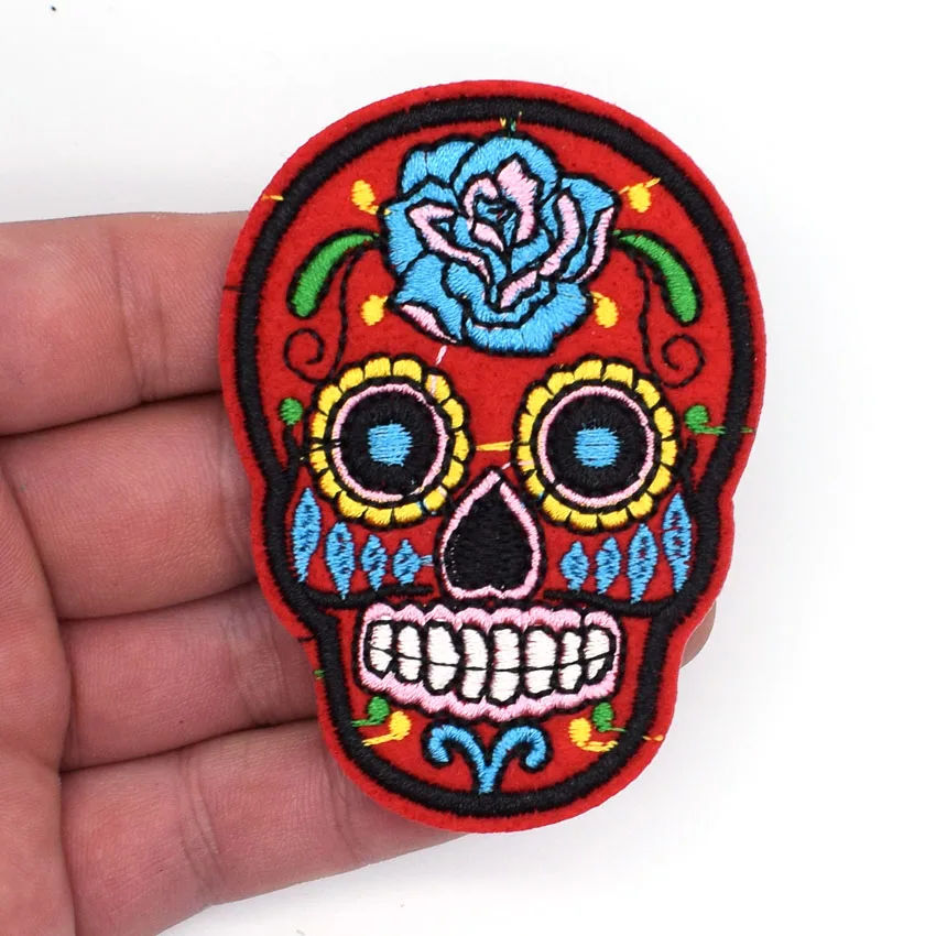 Красный Сахарный цветок череп скелет вышитый Железный...