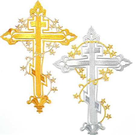 Золотой и серебряный крест-1 шт. ВышивкаЖелезная втулкаПришить Патчи дляCLothingAPplique аксессуары тканевая наклейка