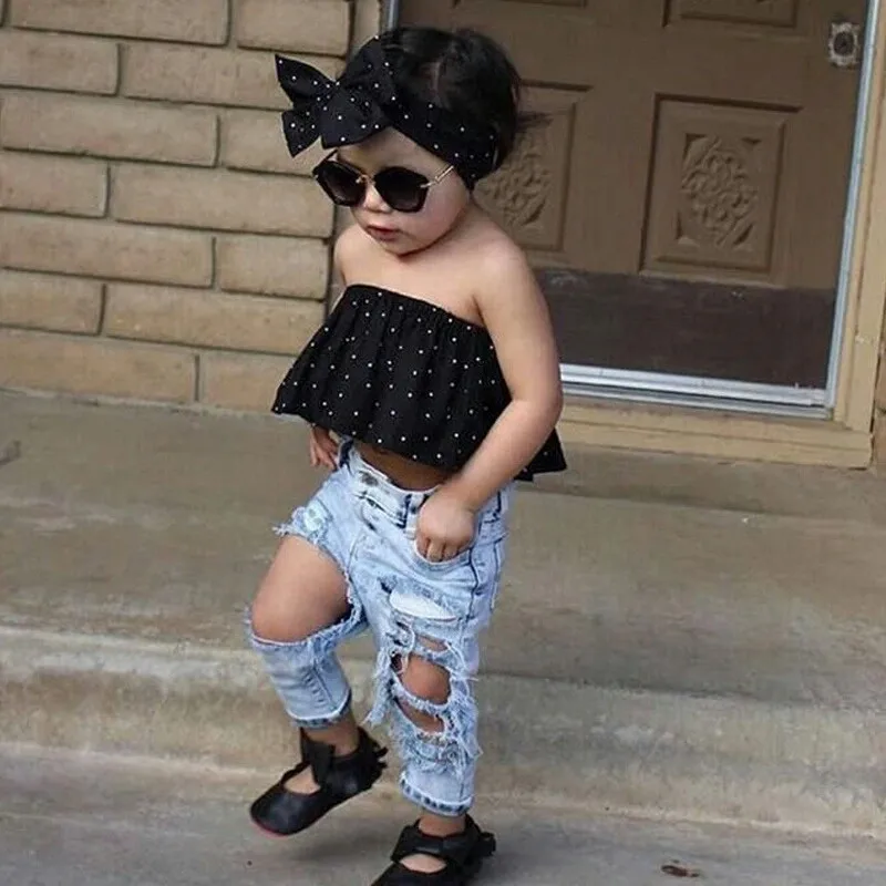 Новейшая модная одежда для маленьких девочек! Высокое качество и абсолютно новый 100% Основной цвет: как на картинке Новинка в моде Материал:Смесь хлопкаОбратите внимание: если ваш ребенок пухленький, мы рекомендуем выбрать больший размер, спасибо.Просим перепроверять размеры детей, рост и полноту по размерной таблице перед покупкой/подачей заявки. Спасибо. Посылка включает в себя:1 Топ + джинсовые штаны + повязка на голову Таблица размеров: