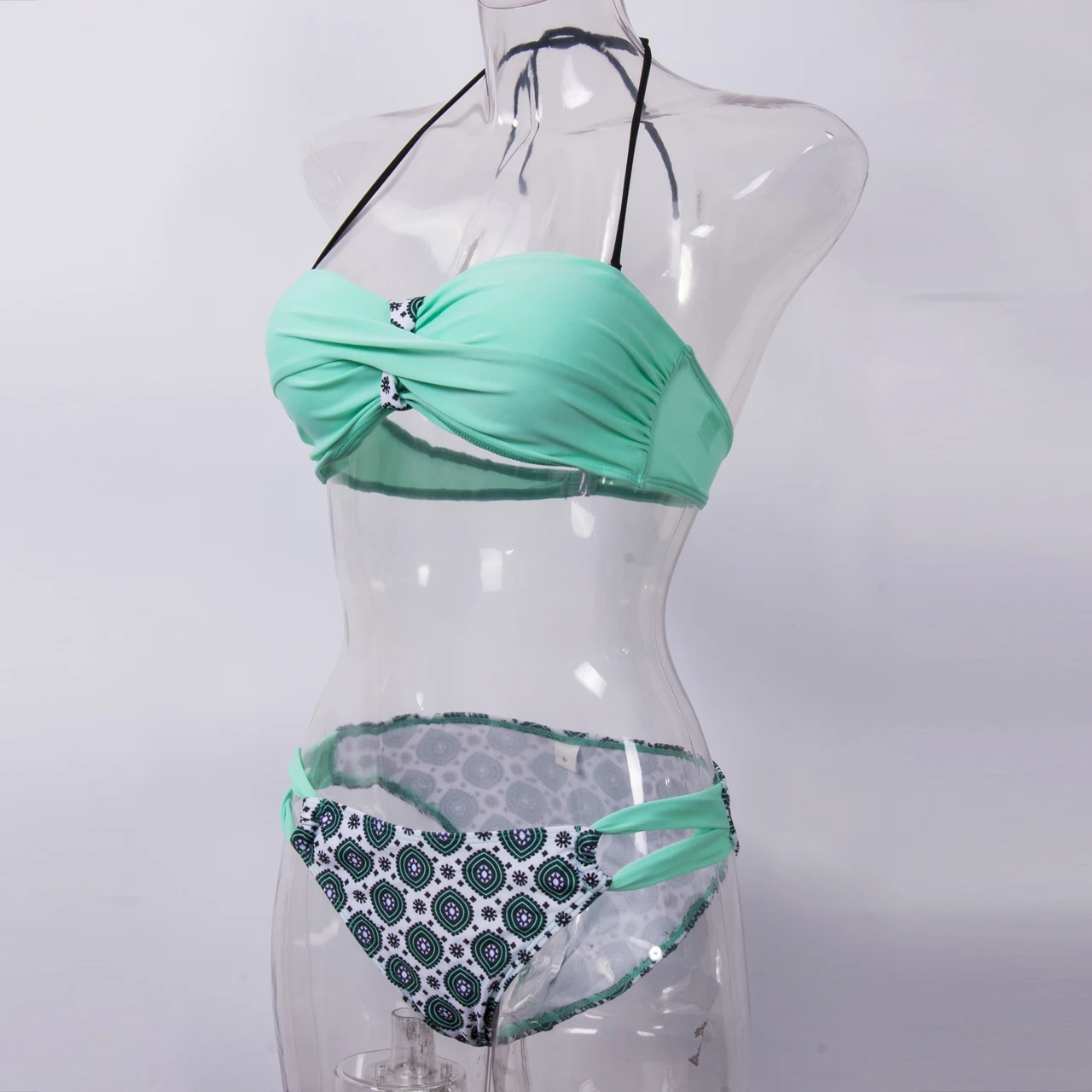 Женский слитный купальник с оборками и зелеными листьями купальный костюм