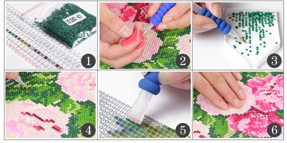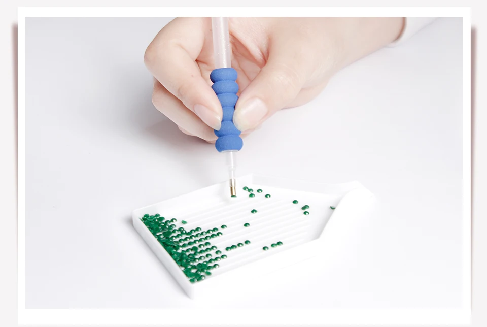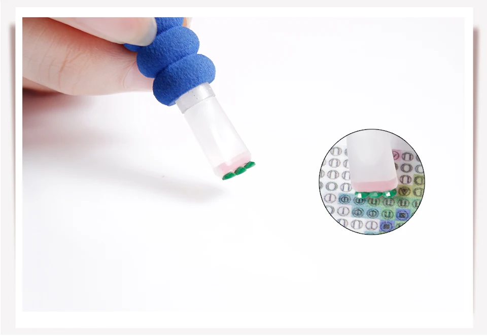 5. Он может наклеить три бриллианта после того, как другой конец ручки будет заполнен клеем, приклеить так быстро.
