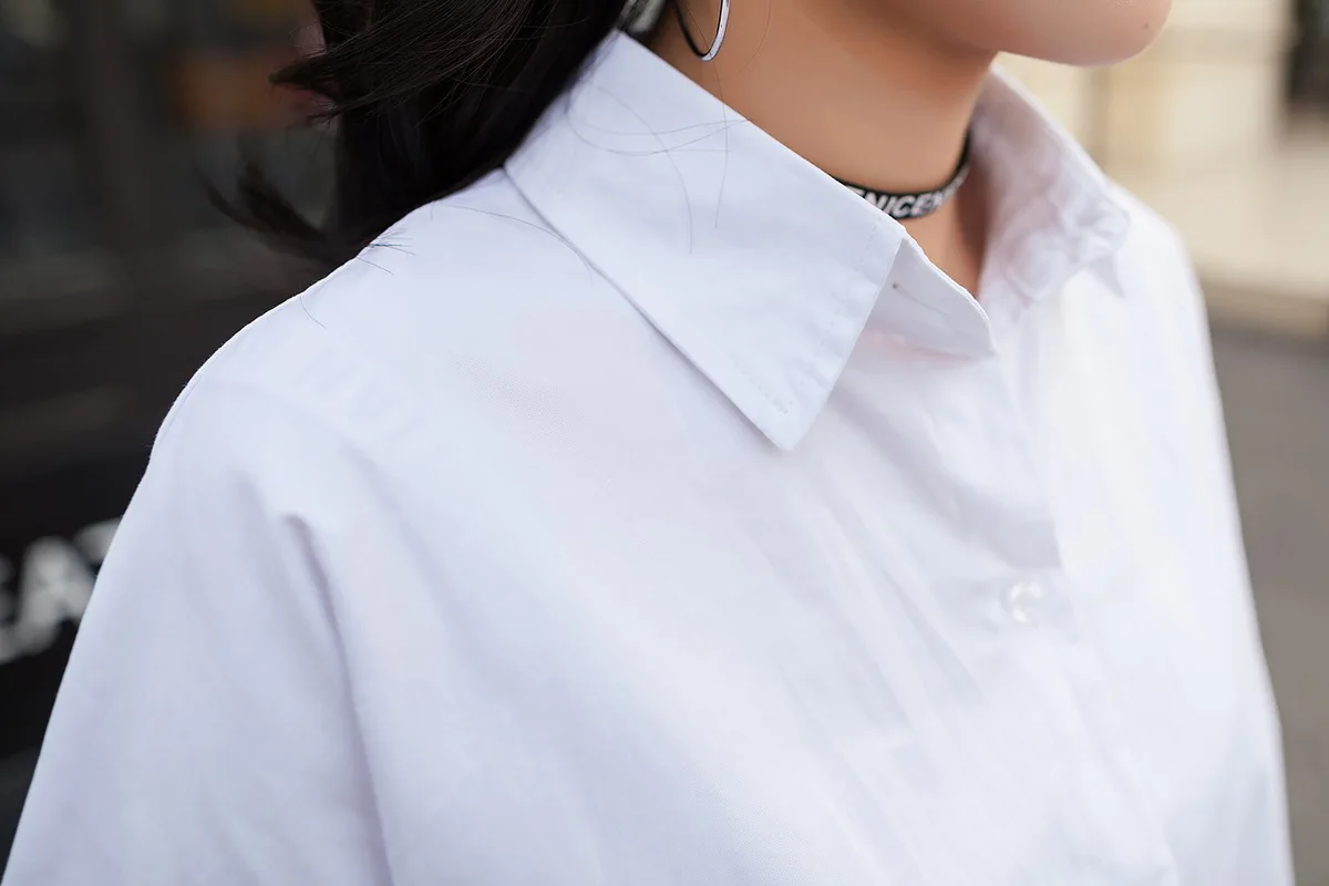 Женские свободные блузки с большими карманами, повседневные белые блузки средней длины с разрезом по бокам, Новинка лета-осени 2018