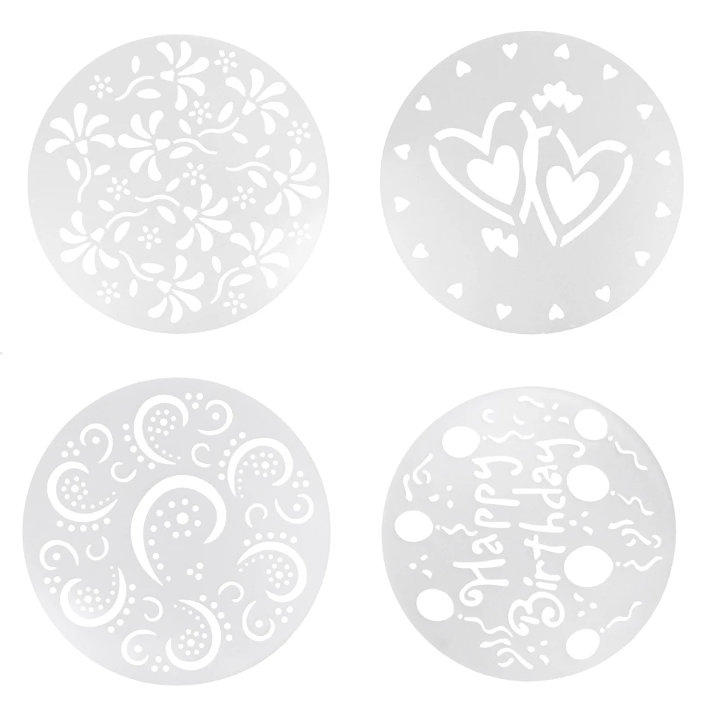Эти советы идеально подходят для использования с помадкой тортов, сахарной пасты, лепестковой пасты, марципана DIY приготовления пищи или ремесла глины Легко трафаретные праздничные узоры на тортах, кексах, конфетах-трафареты на ледяных тортах, затем посыпать сахарным порошком или блестками для тортов Лучше использовать поверх любой поверхности торта, которая не влажная Для сливочного крема убедитесь, что торт гладкий и охлаждаемый (охлажденный), поэтому при обращении не оставляйте отпечатки пальцев Гибкие и многоразовые Простота в использовании и очистке Наша коллекция из 4 дизайнов трафаретов дает вам несколько способов сделать день рождения и повседневные торты более праздничными. Декорирование трафаретами так просто-просто поместите на свой ледяной торт, добавьте захватывающие сахара Wilton в радугу цветов Параметры: Материал: Пластик Диаметр: около 19,5 см/7,68" Форма: круглый Цвет: белый Количество: 1 комплект (4 шт.)