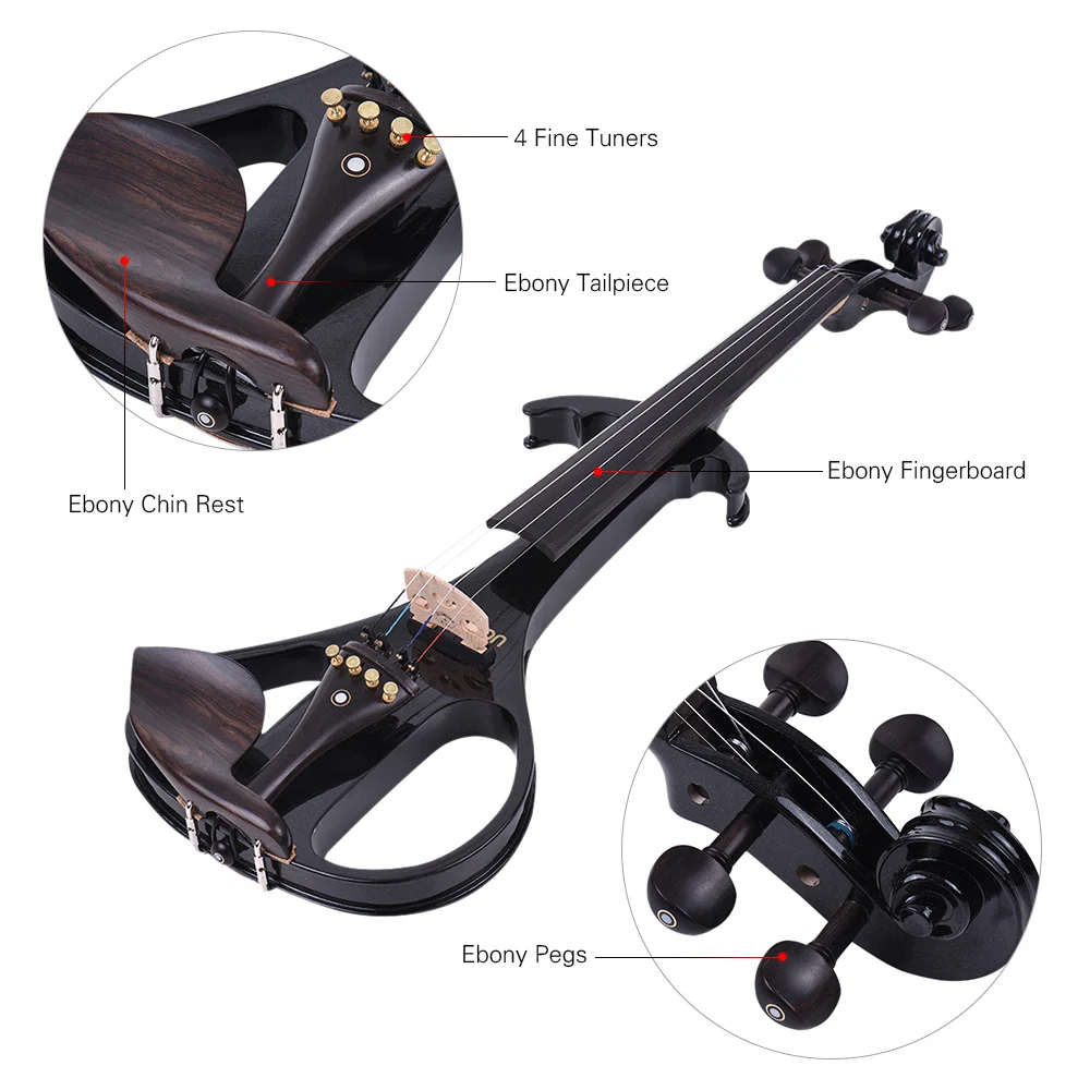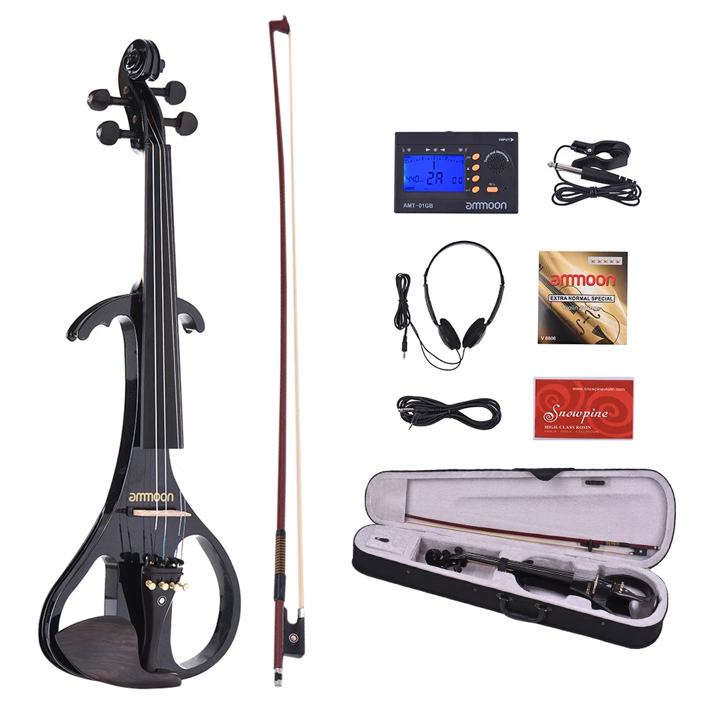 Премиум ammoon 4/4 Размер Бесшумная электрическая скрипка, имеет корпус из цельного кленового дерева, изысканные комплекты из черного дерева, тонкое мастерство, точный и мягкий тон, это будет лучшим выбором для вас!
