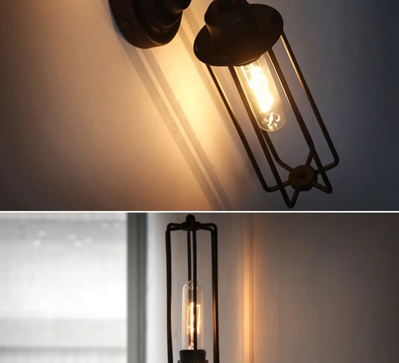 Винтажный настенный светильник с двойной трубкой, Домашний Светильник для спальни, кухни, украшение для дома, ресторан, железная клетка, ретро бра, светильник