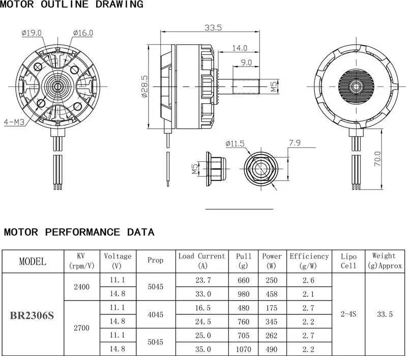 Или 1 бесщеточный двигатель BR2306S 2400KV CCW