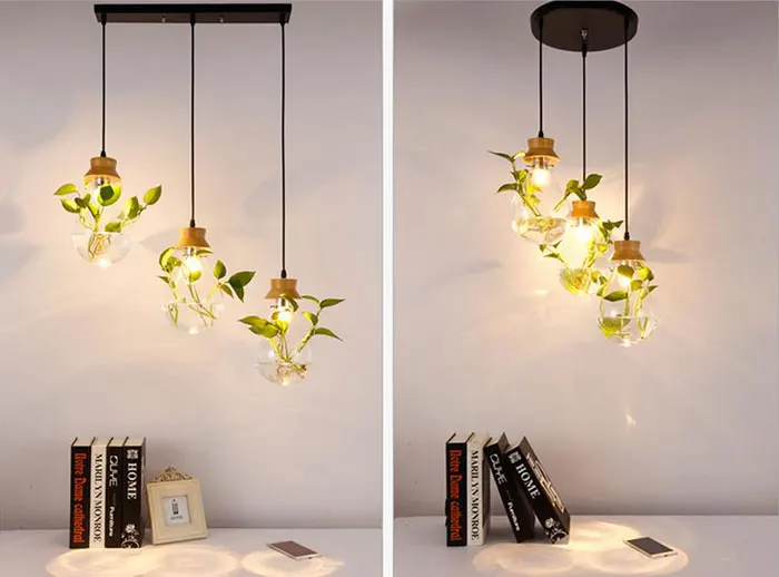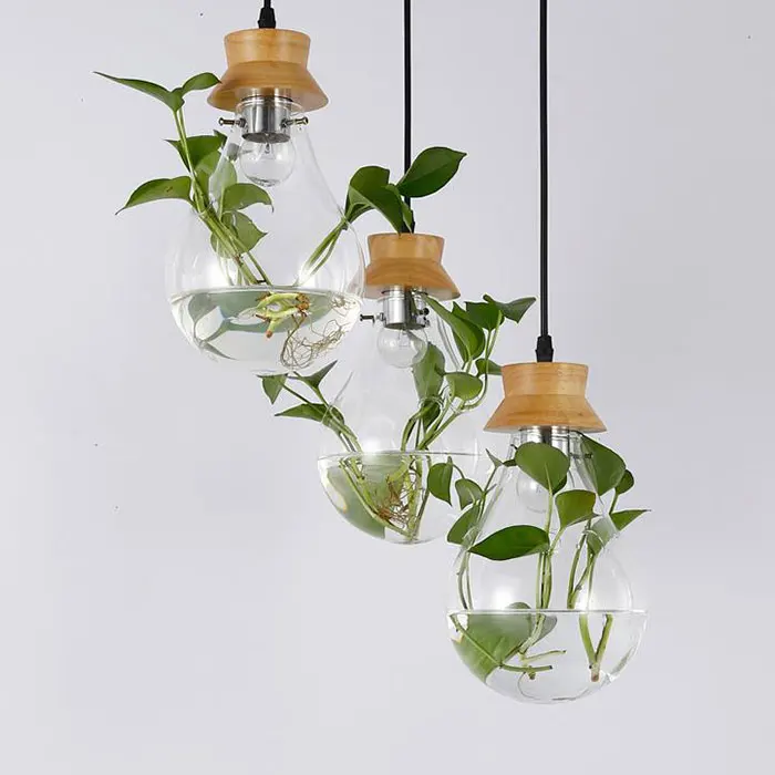 Современная Люстра для растений, креативные деревянные стеклянные люстры для гостиной, кафе, магазин одежды, декоративные люстры, lamparas de tec
