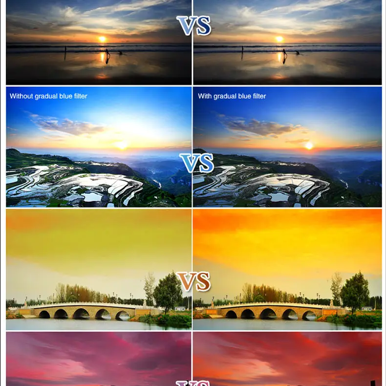Градиентные цветные фильтры обеспечивают постепенный переход цвета для плавного эффекта смешивания. Придайте вашему ландшафту и текстуре кожи более красочное прикосновение. Идеально подходит для изменения настроения картины.