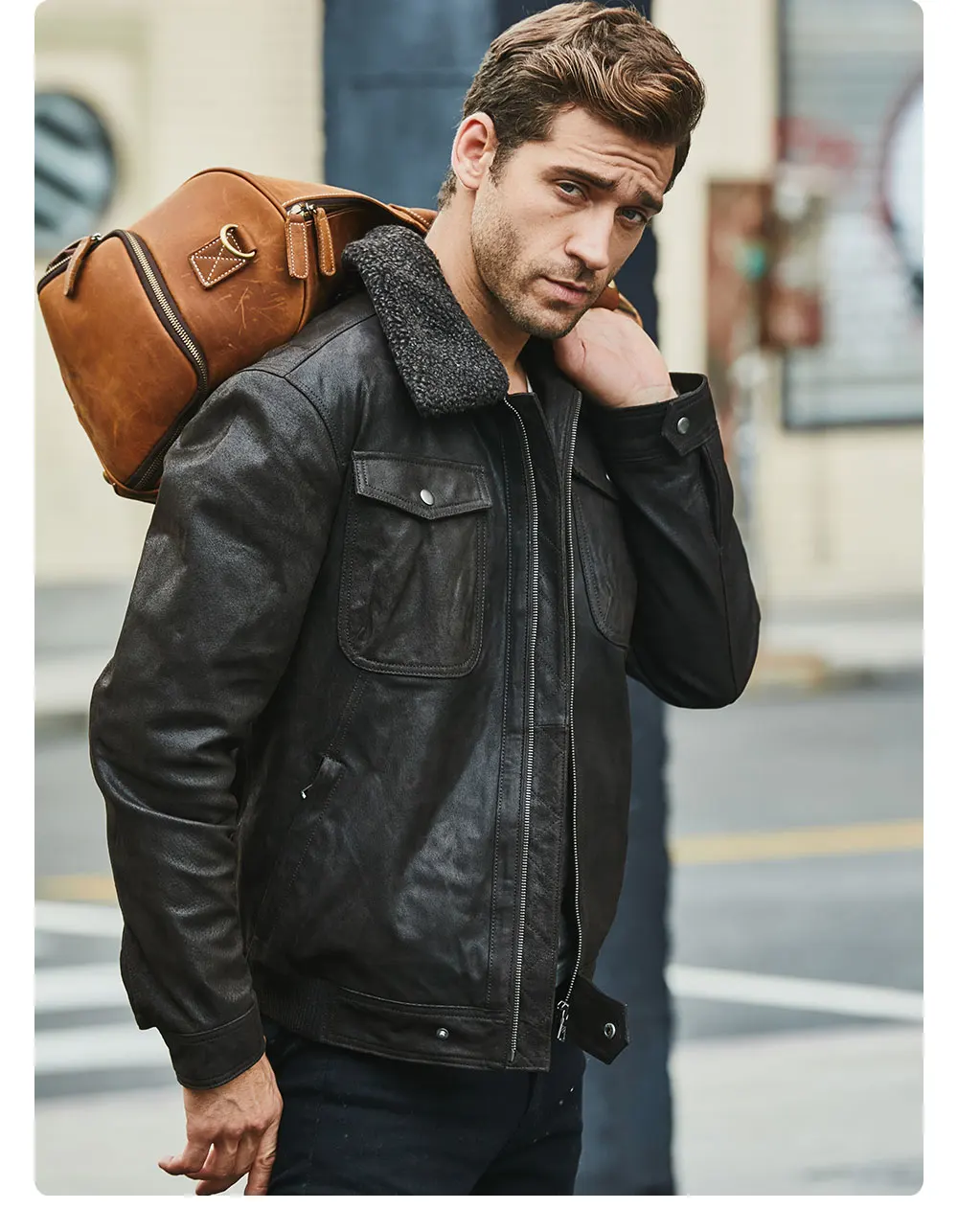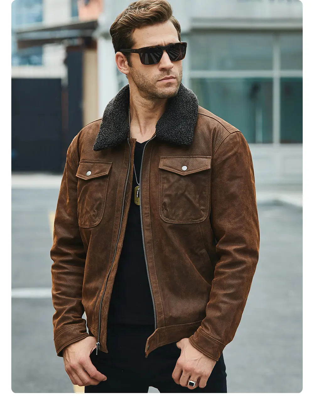 Bинтажная Kожаная куртка мужская коричневый жакет из натуральной свиной кожи