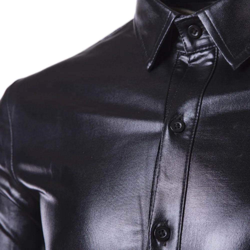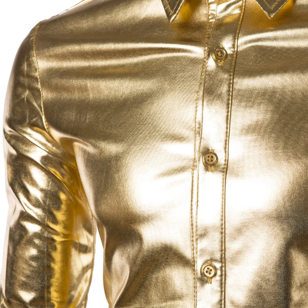Мужские трендовые рубашки с металлическим золотым и серебряным покрытием для ночного клуба, стильные блестящие рубашки с длинными рукавами для мужчин Мужская блестящая рубашка
