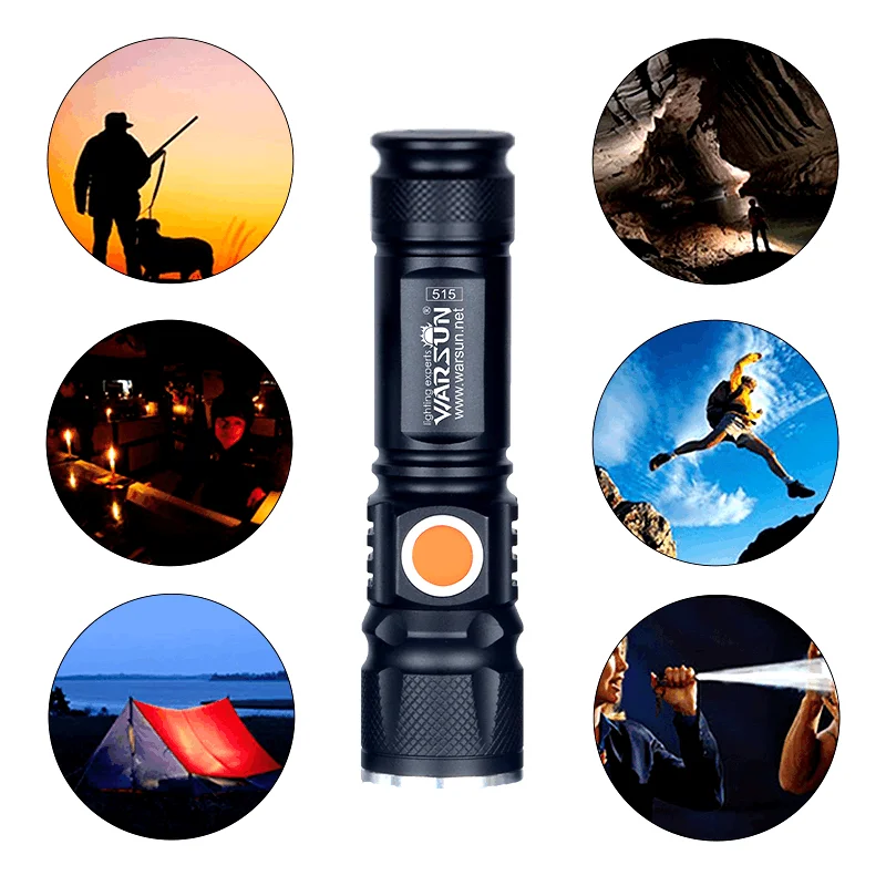 Внешний Тактический Фонарь с Зарядкой USB и 3 Режимами