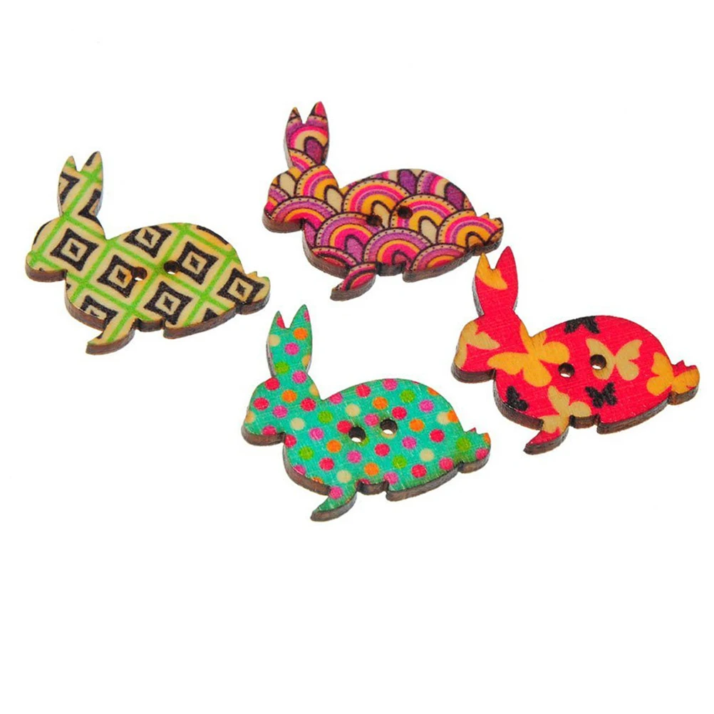 50 шт Кролик Форма 2 отверстия деревянные пуговицы для шитья кнопка дети Скрапбукинг DIY ремесло свадебное украшение (случайный цвет)