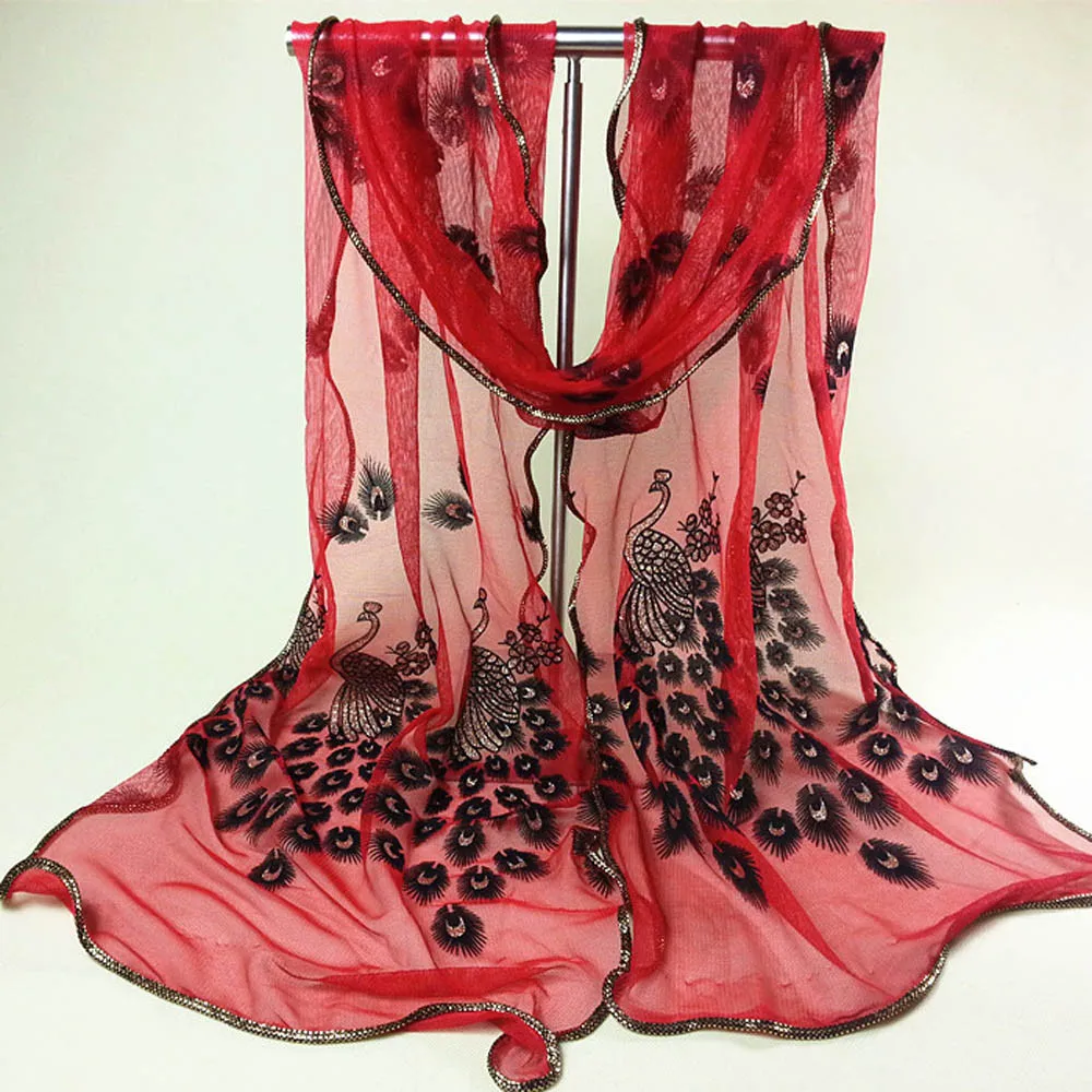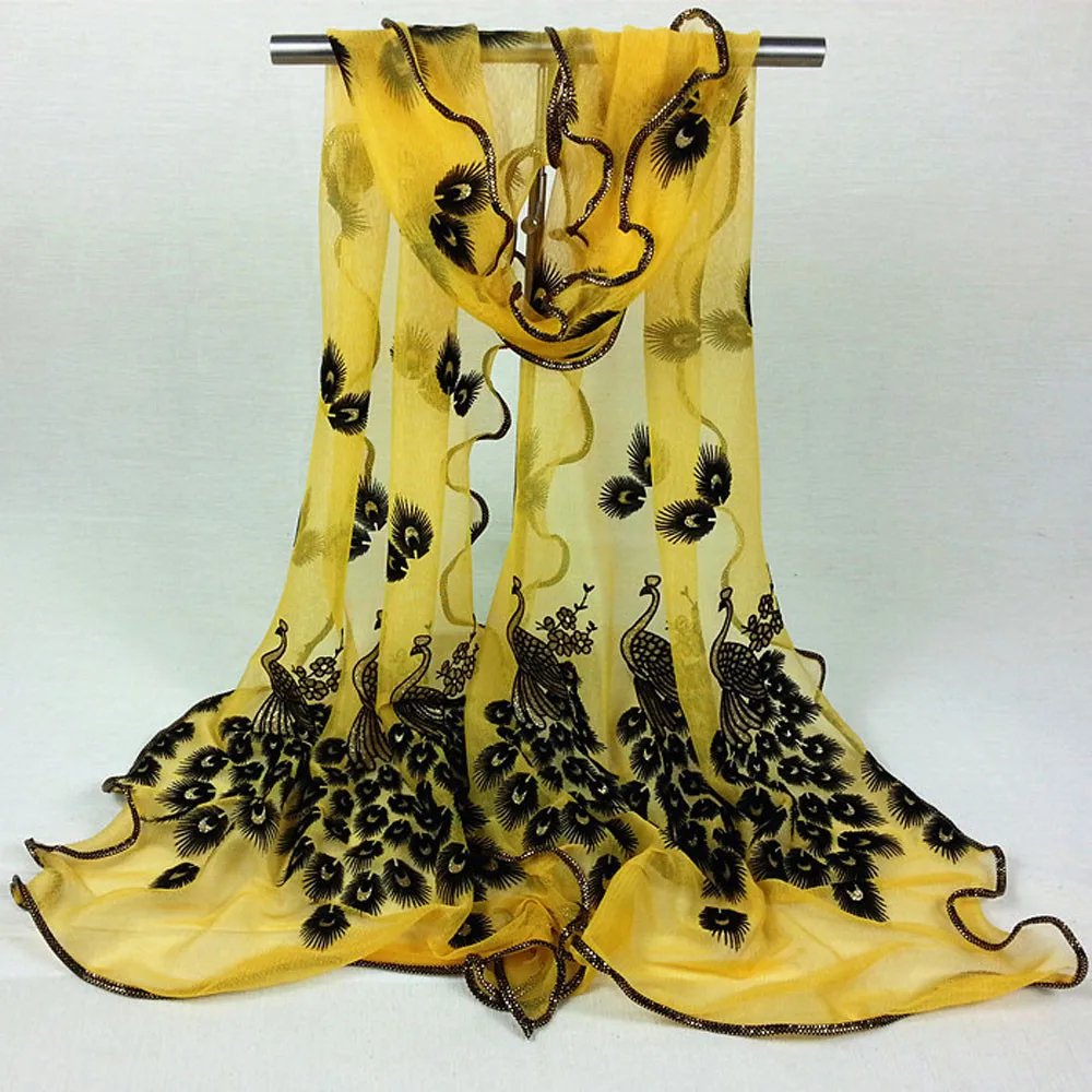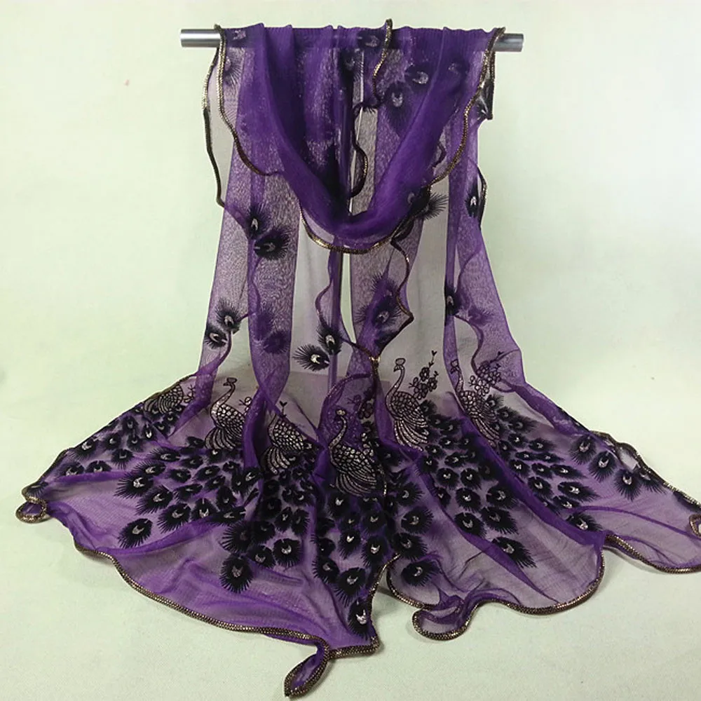1 шт. Женский шарф с цветочной вышивкой кружевной длинный мягкий шарф шаль (БезУпаковка для розничной продажи)