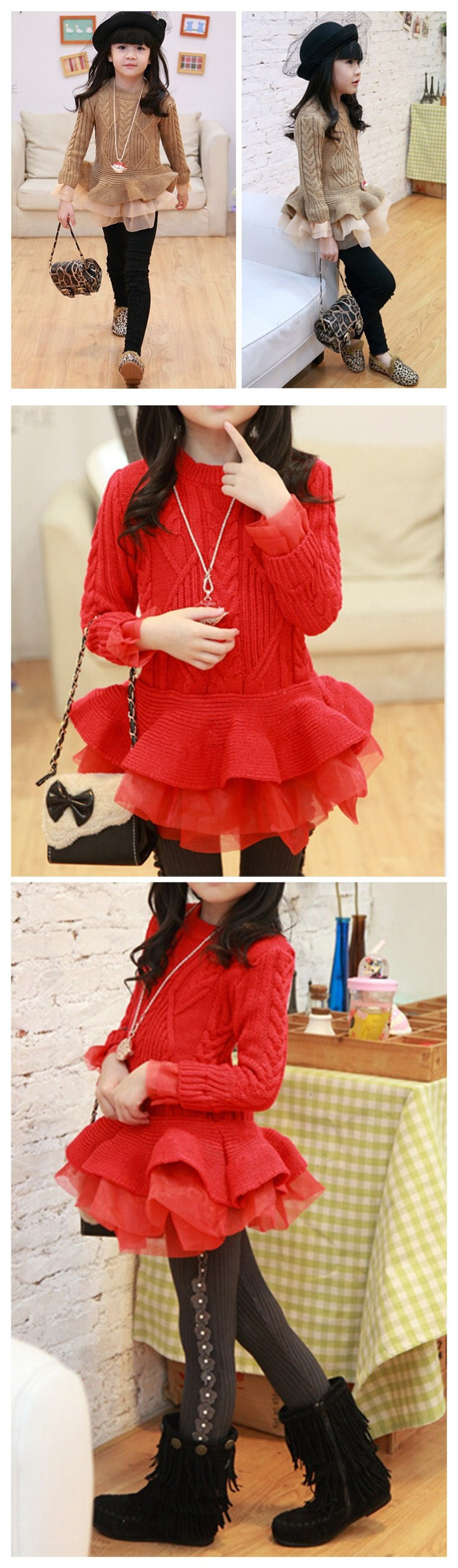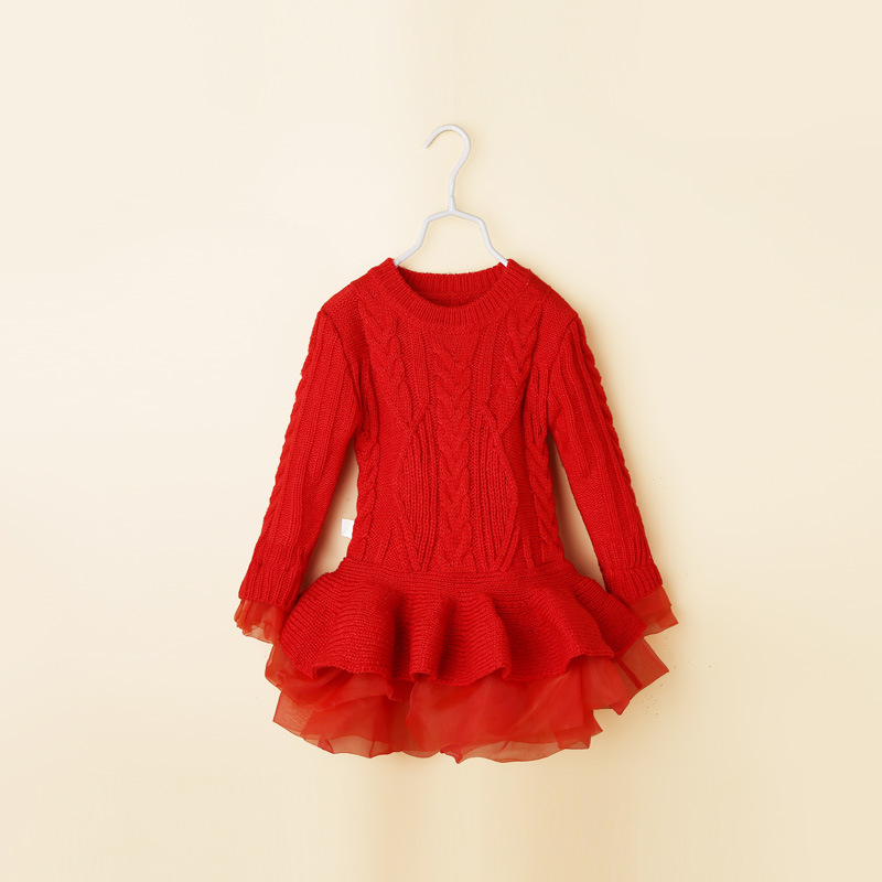 Новинка 2017 года; осенние вязаные свитера с круглым вырезом для маленьких девочек; детское шерстяное трикотажное платье-пачка; детская одежда в европейском и американском стиле