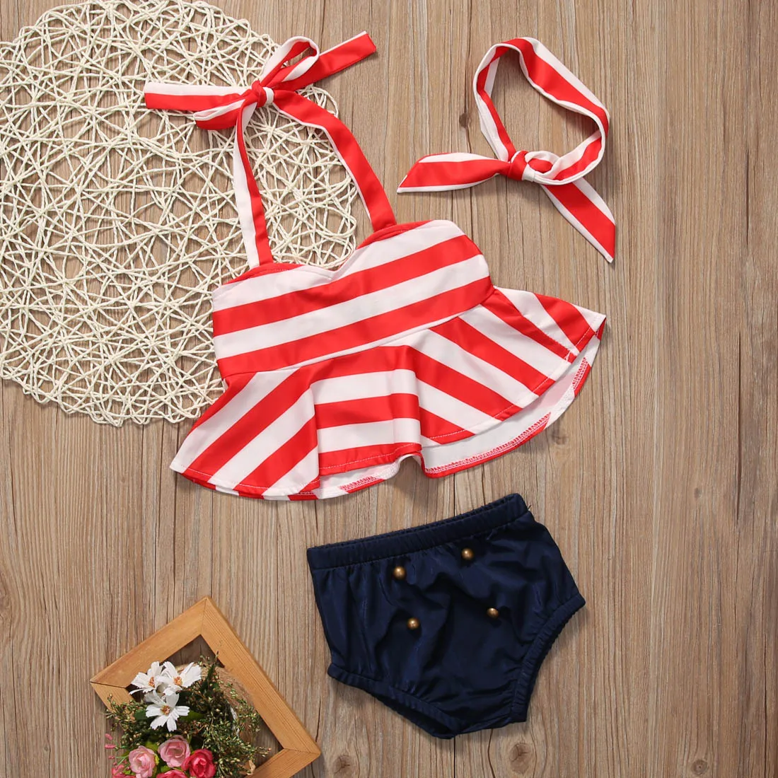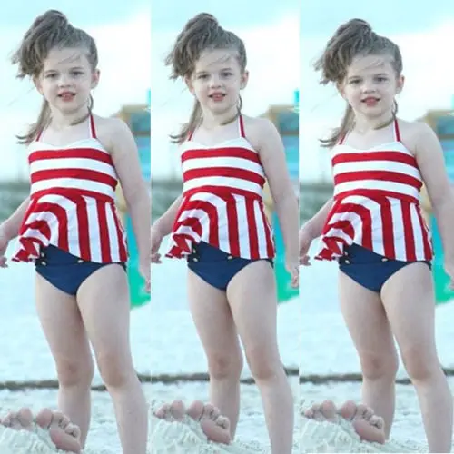 2017 От 0 до 4 лет танкини для маленьких девочек; Купальник-бикини в полоску