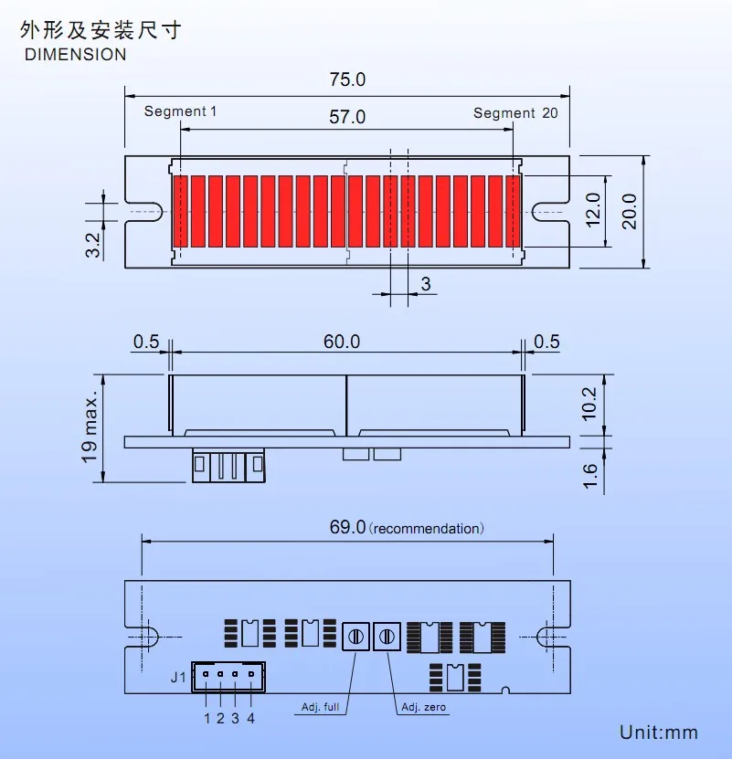 Основной индекс производительности: 1. Протестированный Тип сигнала: ток, напряжение, реstat;2.Входная перегрузка: два раза входной сигнал; 3. Входное сопротивление вольтметра>500KΩ4. Сопротивление Петли амперметра:<50 Ом; 5. Эффективный номер сегмента дисплея:20Раздел;6. Длина светового луча:57 мм; 7. Ширина луча:12 мм8. Расстояние между секциями:3,0 мм; 9. Источник питания:DC5V-DC24V10. Типичное энергопотребление: ≤200 мВт (F. S.) 11. Точность измерения: ток, напряжение(± 0.5% с ± 1 сегмент),Реstat(± 1.0% Ф. С ± 1 сегмент); |