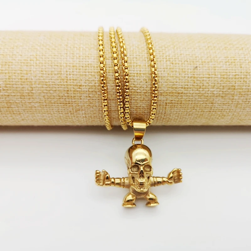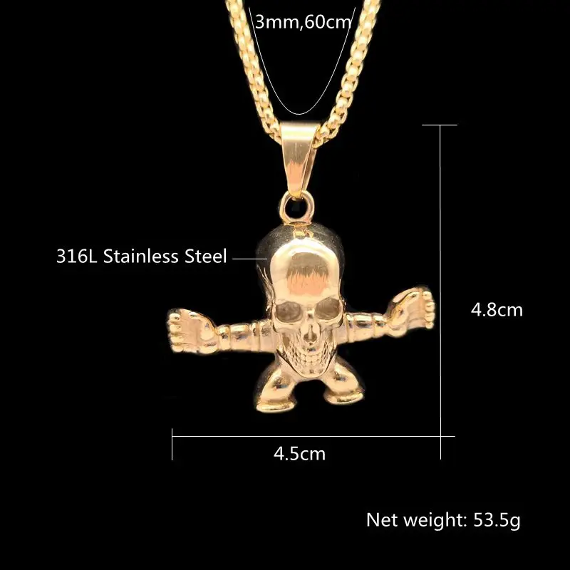 Креативное ожерелье из нержавеющей стали с маленьким карликом скелентоном, мужское и женское модное короткое ожерелье с черепом, ювелирные изделия
