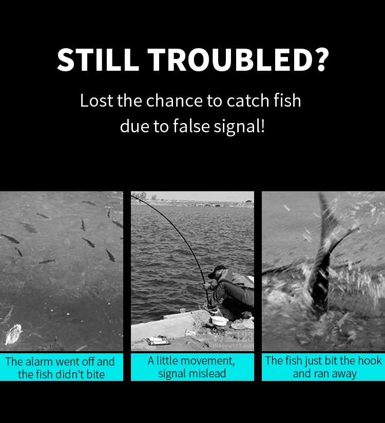 Особенности: прерывистый сигнал тревоги, звук, рыба отсоединяется после еды крючок около секунды, или леска была потянута другими внешними силой, и крючок действительно не был съеден.
