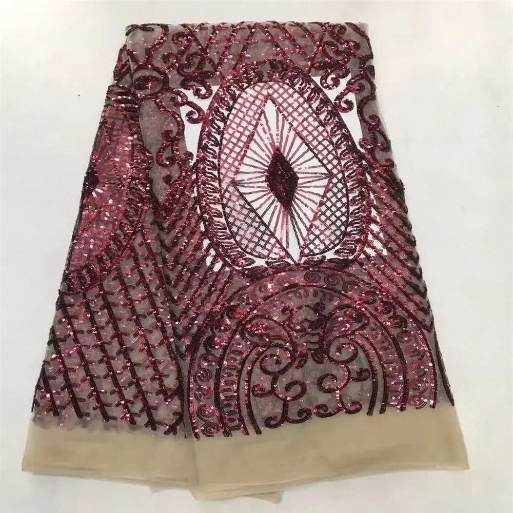 Африканский кружевной ткани 2017 вышитые в нигерийском стиле шнуровка Ткань Высокое качество французского фатина кружевной ткани CD22-1 бордовый кружевной тканинам $74.00