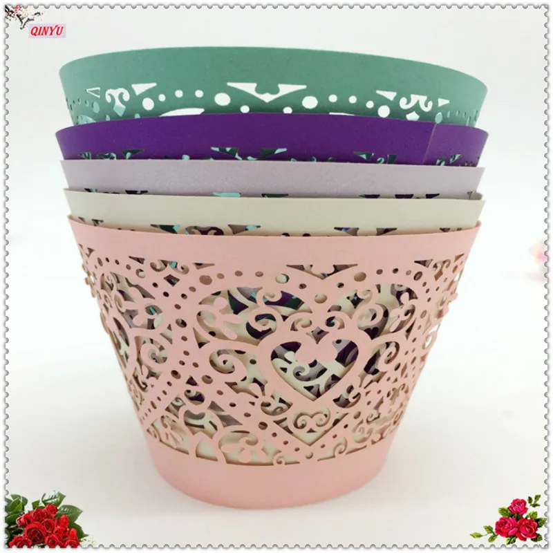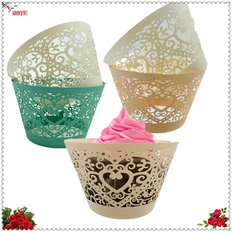 100 шт., лазерные бумажные обертки для кексов, лазерная резка, чашки для торта, обертки, свадебные украшения, принадлежности для тортов, инструменты для трафаретов 8ZSH180