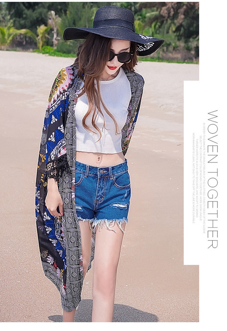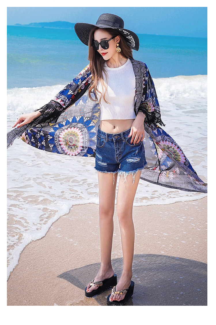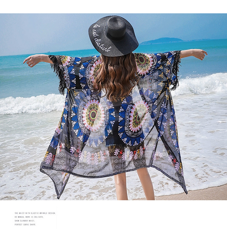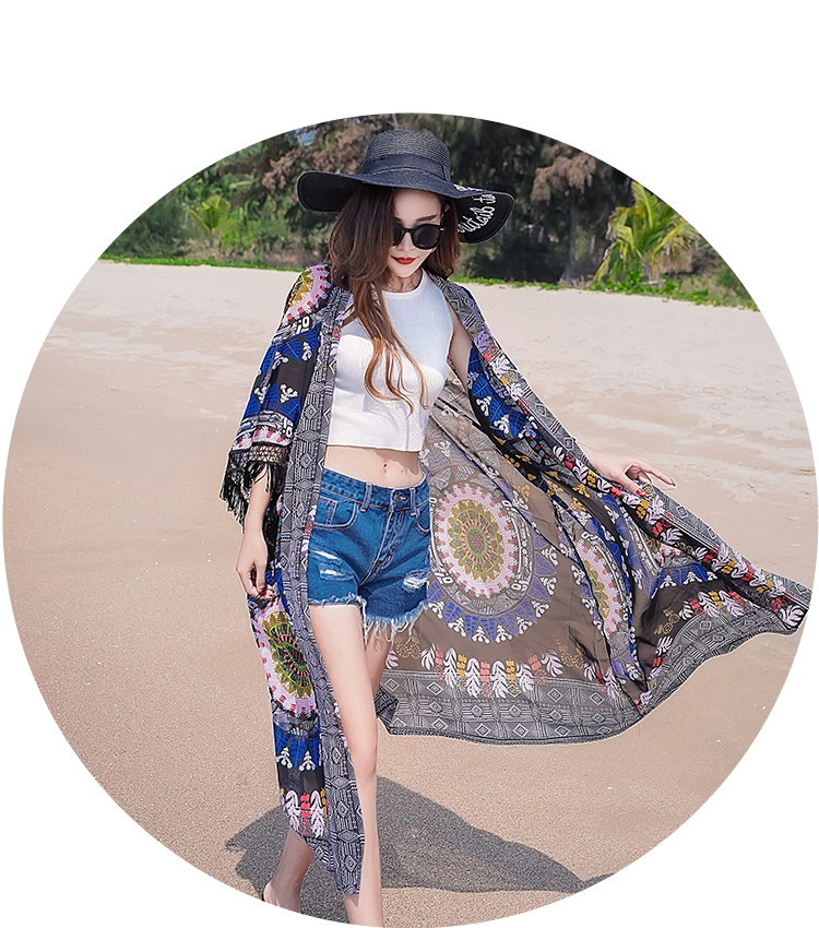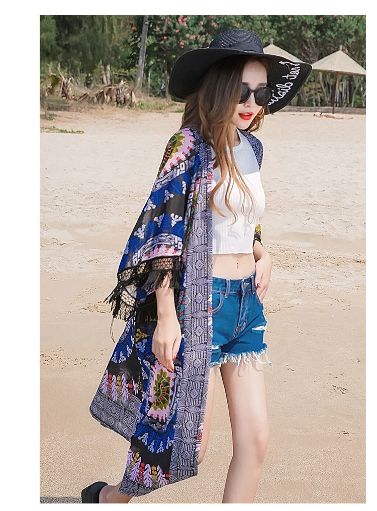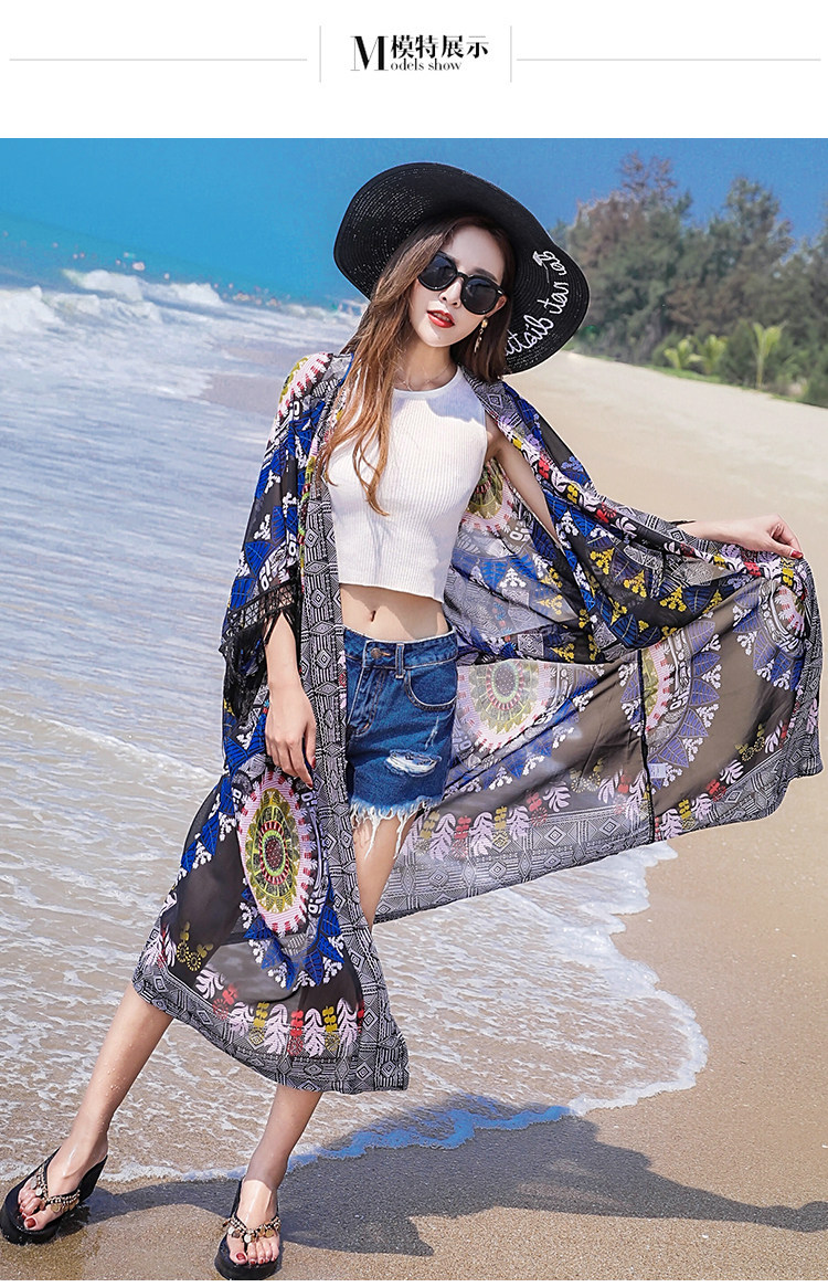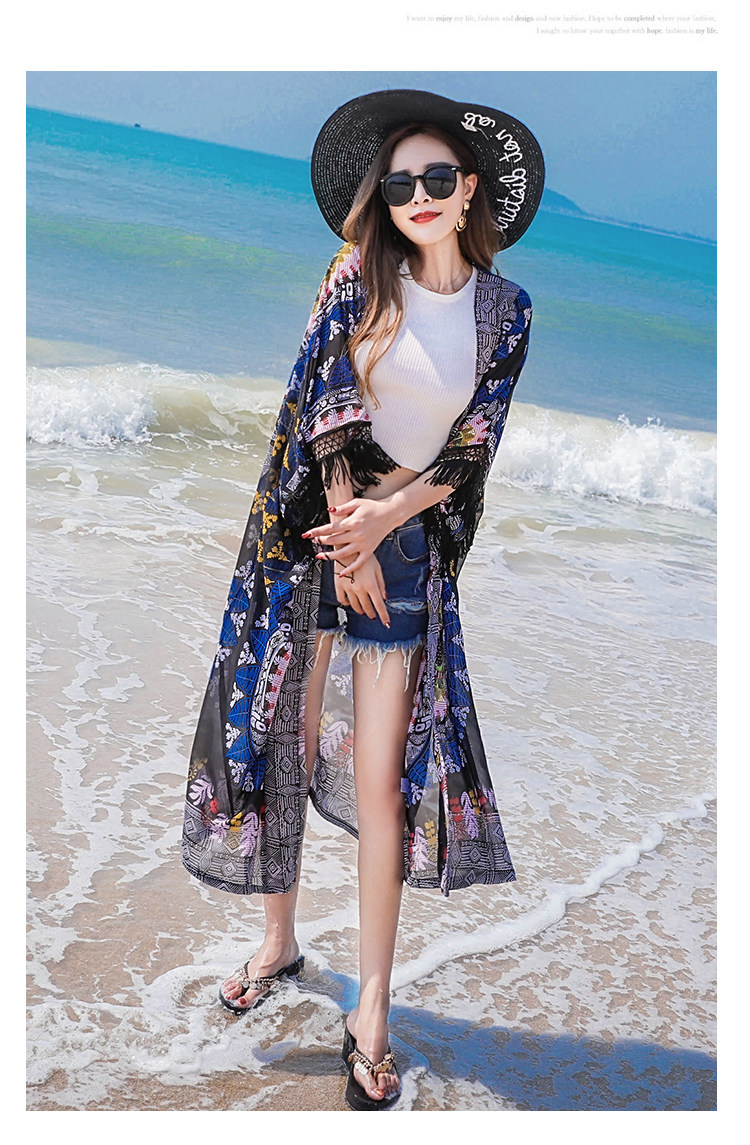 Модное женское длинное кимоно Cheshanf с тропическим цветочным принтом кардиган