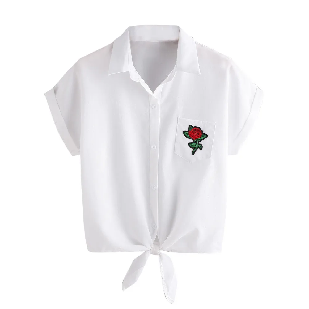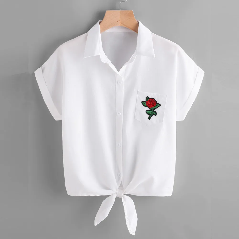 Женская блузка с розами, блузки с коротким рукавом, женская рубашка