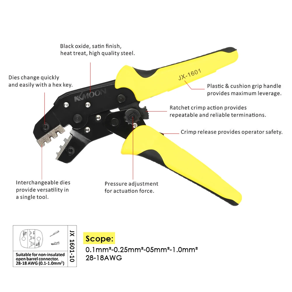 Диапазон обжима: 28-18 AWG (0,1-1,0 мм & sup;2;)