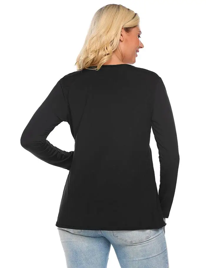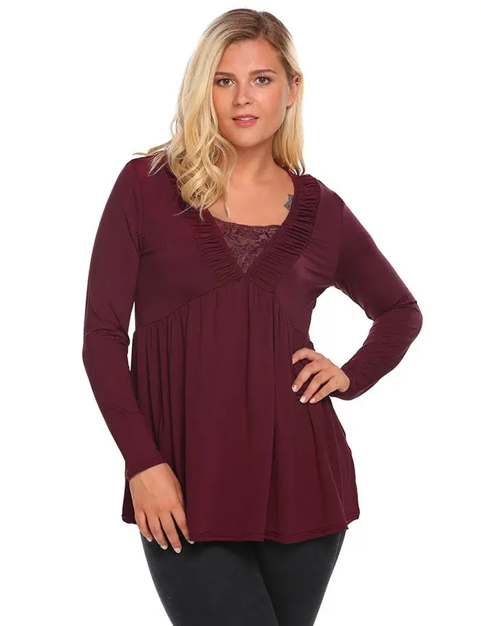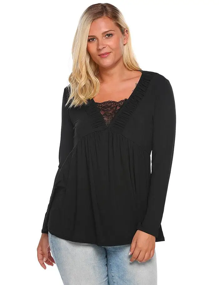 [Стиль]: женская футболка IN'VOLAND, большие размеры, осень-весна, v-образный вырез, длинный рукав, плиссированные пуловеры, завышенная талия, футболка, Топы, плюс размер