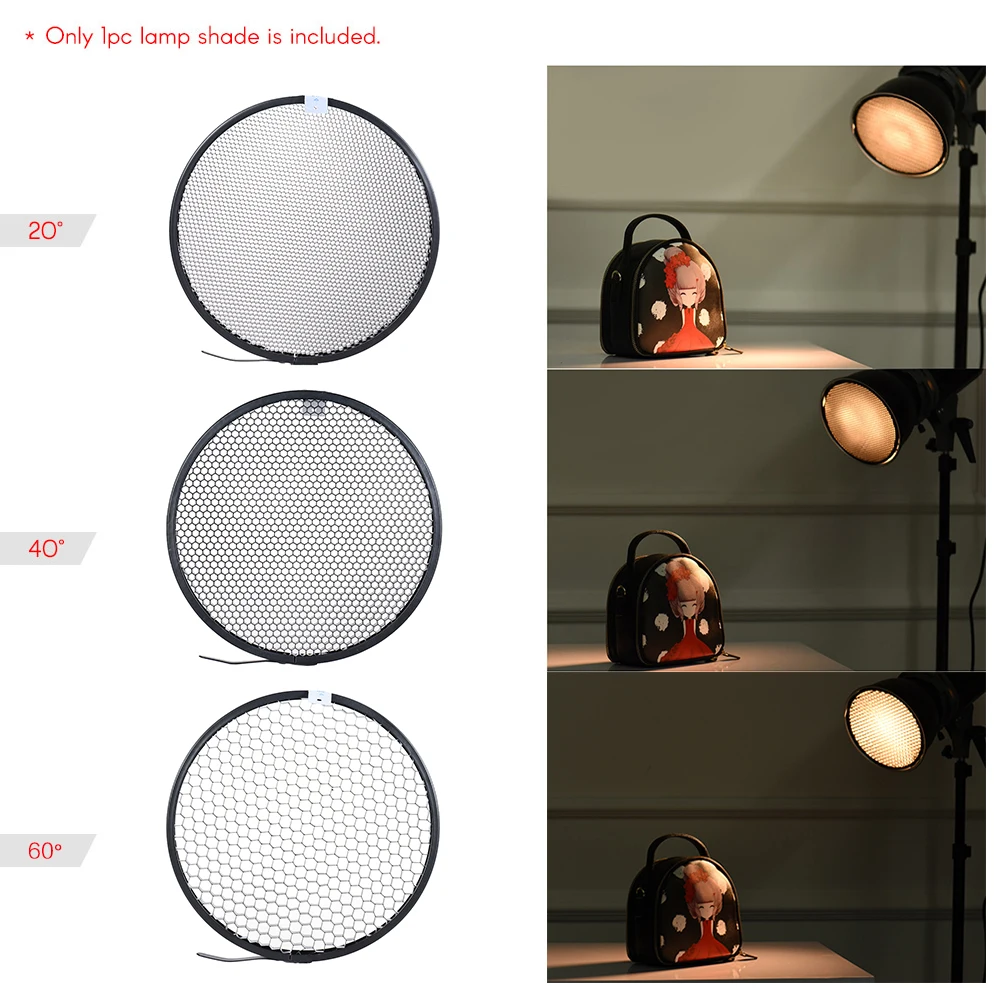 Поставляется с сотовыми сетками 20 °, 40 °, 60 °, установка одной из них на абажур лампы может значительно сузить светильник-бросок от вашей лампы тени и обеспечить отличный эффект тени.