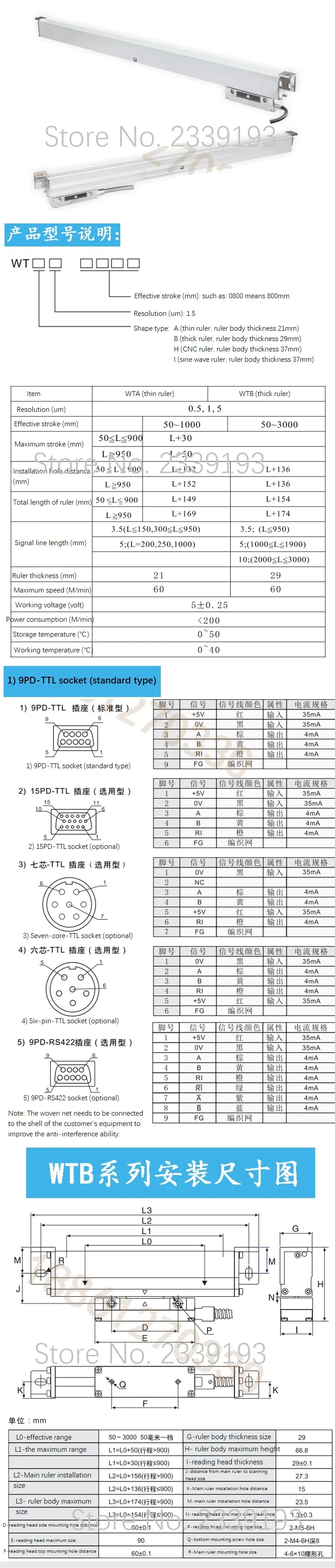 WTA0.5 〔Thin Ruler〕 | ± 0,01 3 + 3LO/1000 мкм или более высокая точность, 2 канала Z TTL квадратная волна 0t и 90, доступно для 4 каналов TTL квадратная волна 0,90, 180, 270 | 50-1000 | 0,0005 | 0,02 мм | 50 мм | 30 м/мин |