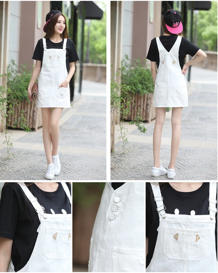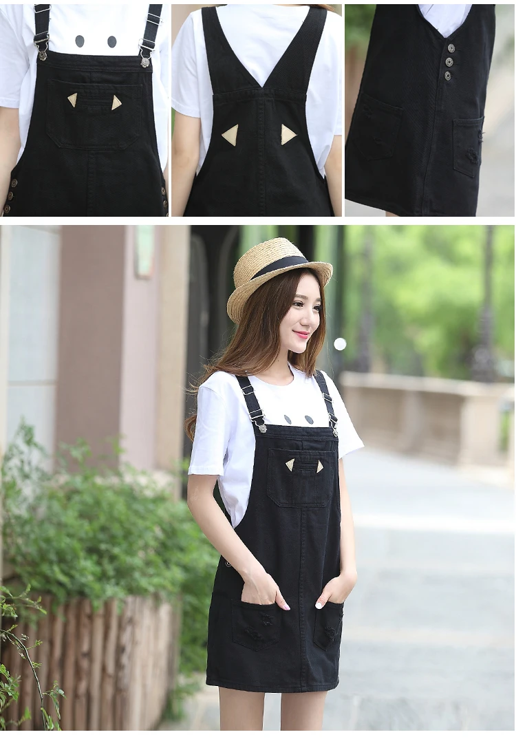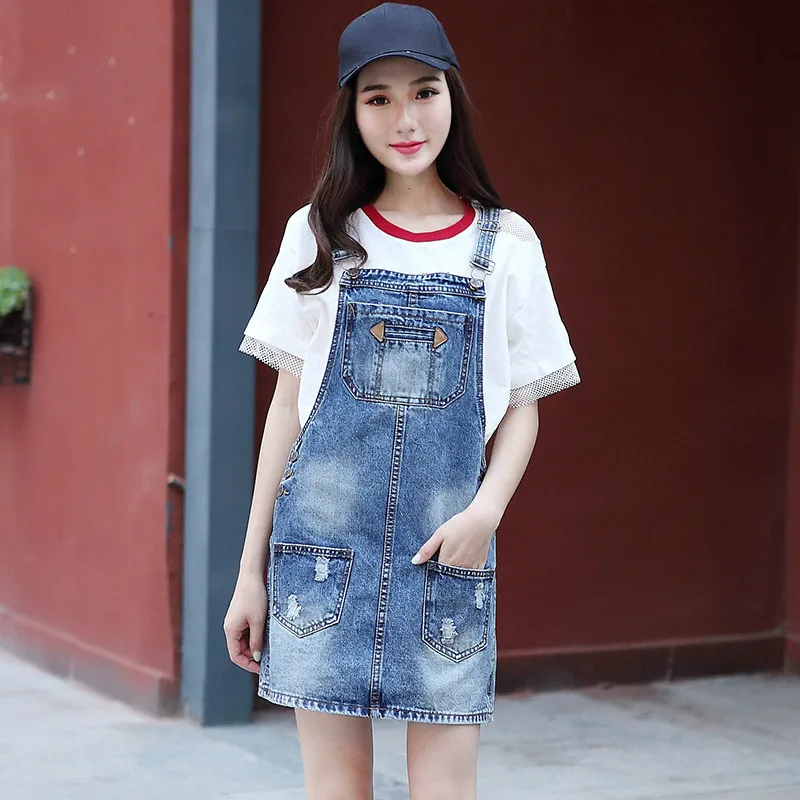 Женское джинсовое платье на бретелях без рукавов, джинсовый сарафан с подтяжками и рваными дырками в консервативном стиле, Новинка лета 2019