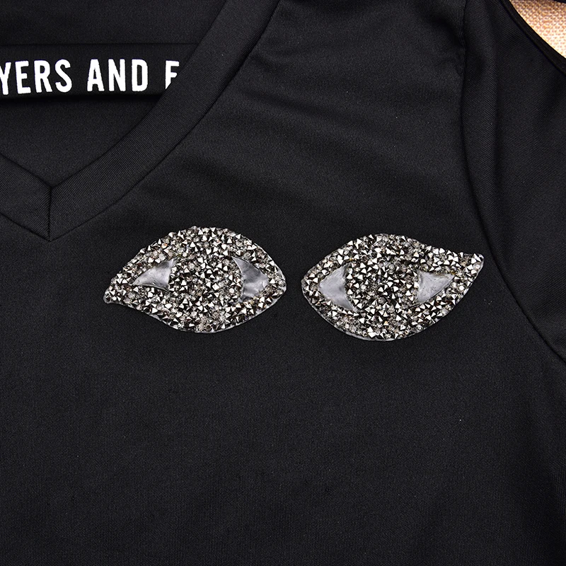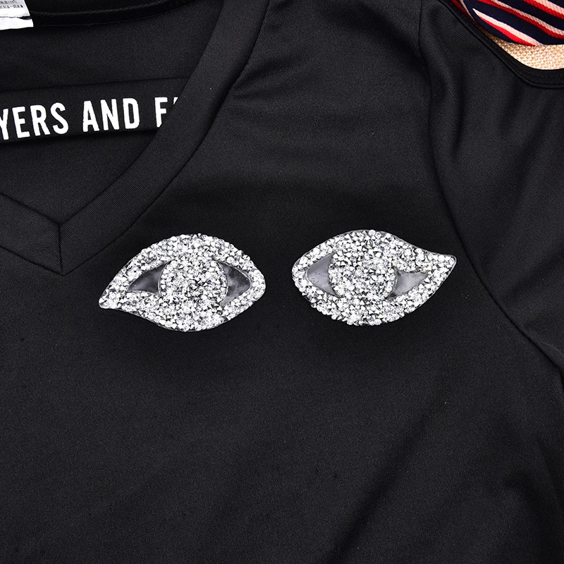 1) Материал: стразы с горячей фиксацией 2) Размер: глаз 4,5x7 см Стразы широко используются в украшениях одежды, одежды, сумок, чехлов для мобильных телефонов. Изготовленные из AAA pointback Стразы, они придают блестящий и эффектный вид всему, к чему он прикрепляется. Если вам нужен собственный логотип, пожалуйста, свяжитесь с нами.