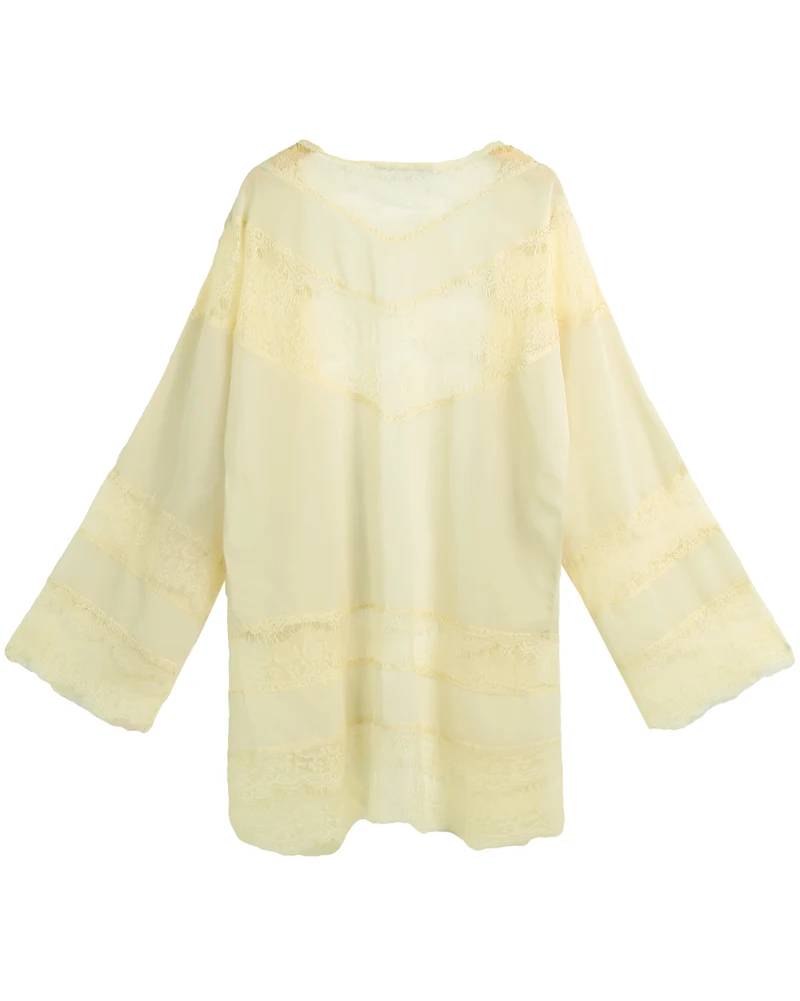 Этот кардиган, изготовленный из ультра-шелковистого полупрозрачного шифона, с нежным цветочным кружевом, придает элегантный и шикарный вид. Отлично сочетается с шортами или бикини для защиты от солнечного света и сохранения моды.