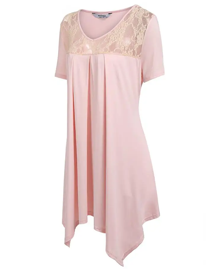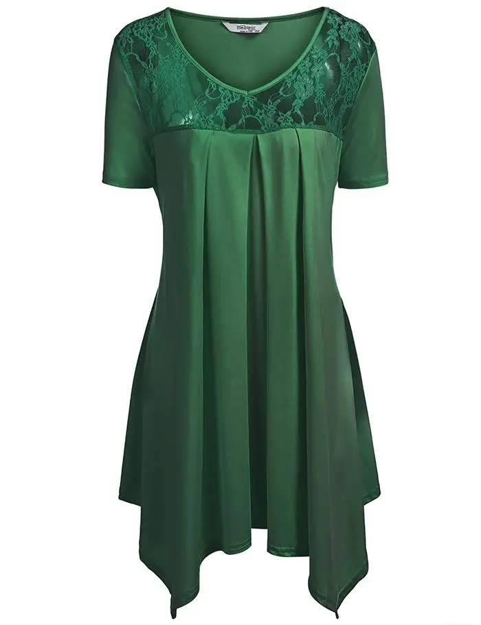 [Стиль]: женская футболка IN'VOLAND, повседневные топы размера плюс с v-образным вырезом и коротким рукавом, кружевные лоскутные плиссированные свободные длинные футболки, футболки оверсайз 4XL