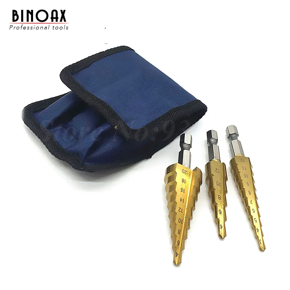 3 шт. 1/4 ''большой HSS шестигранный хвостовик титановое конусное покрытие ступенчатое сверло Набор с Чехол