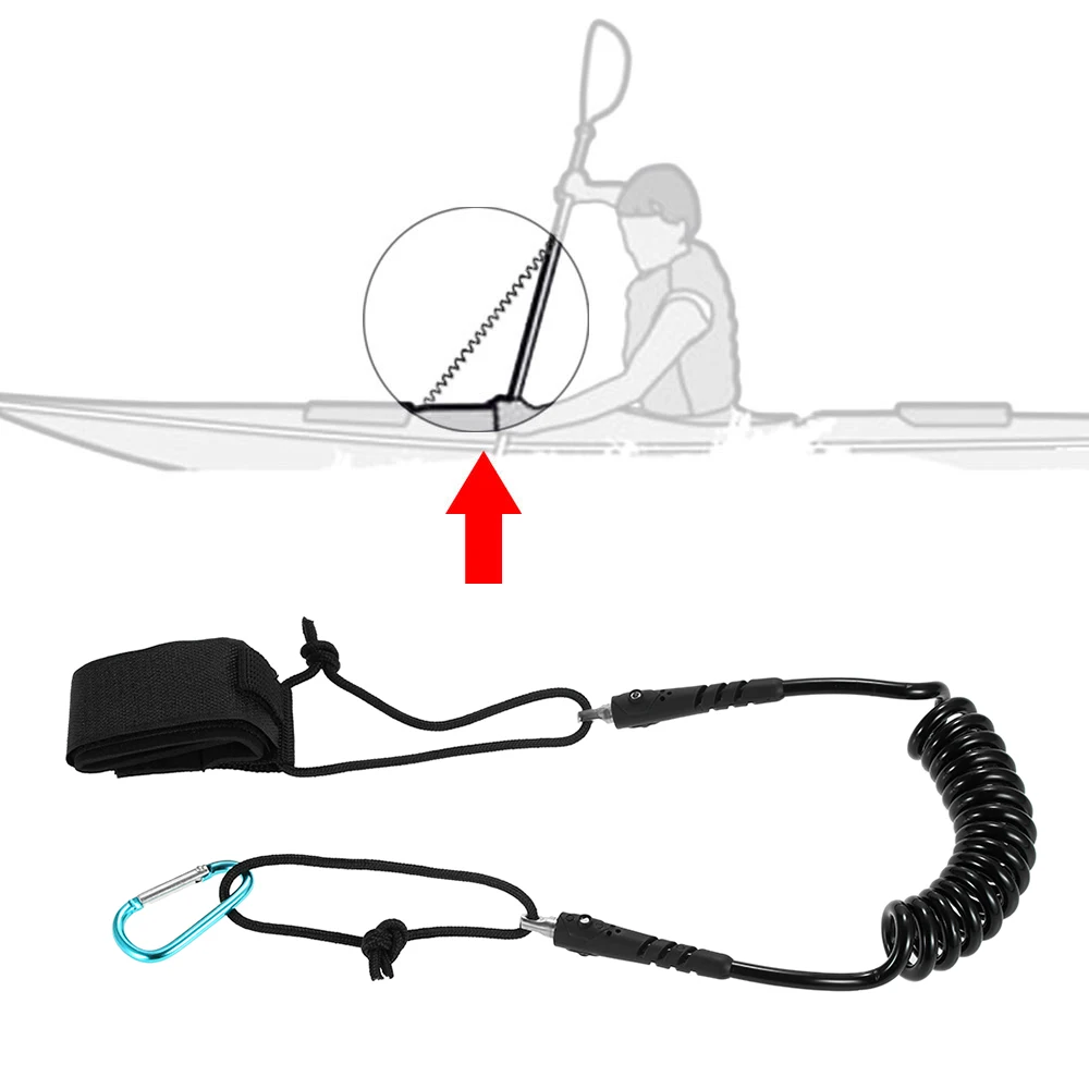 Зажимные зажимы плотно соединяют поводок с каяком, а крепежная лента обертывается вокруг ваших весла или стержней.