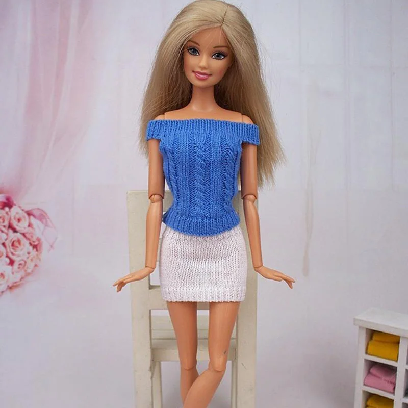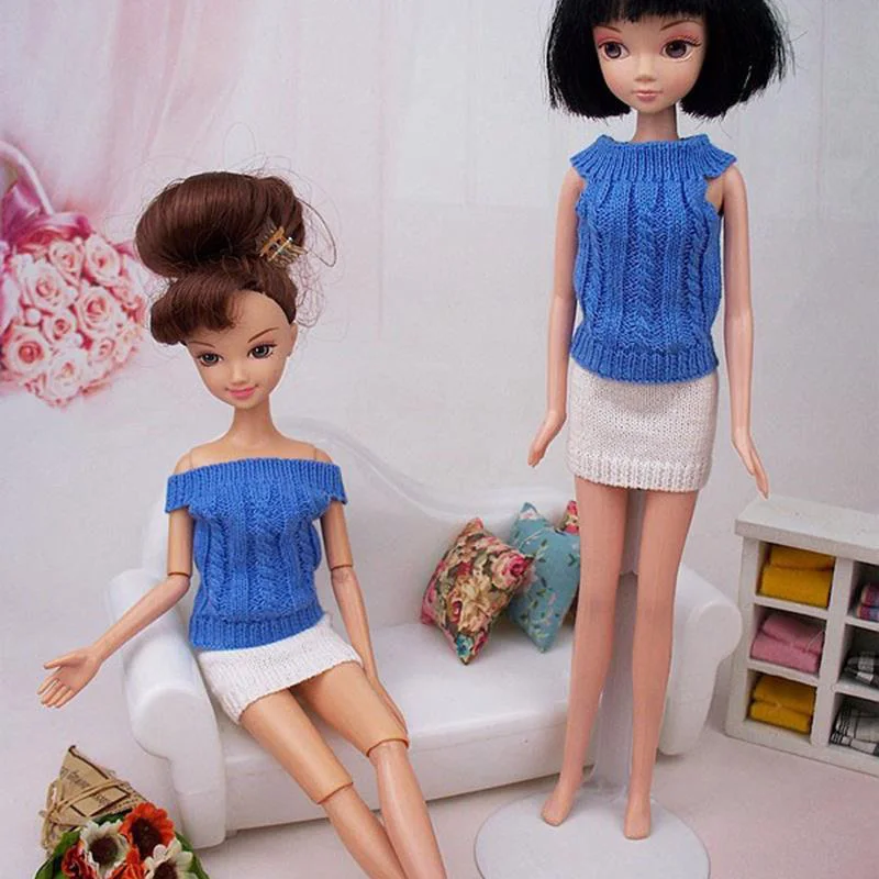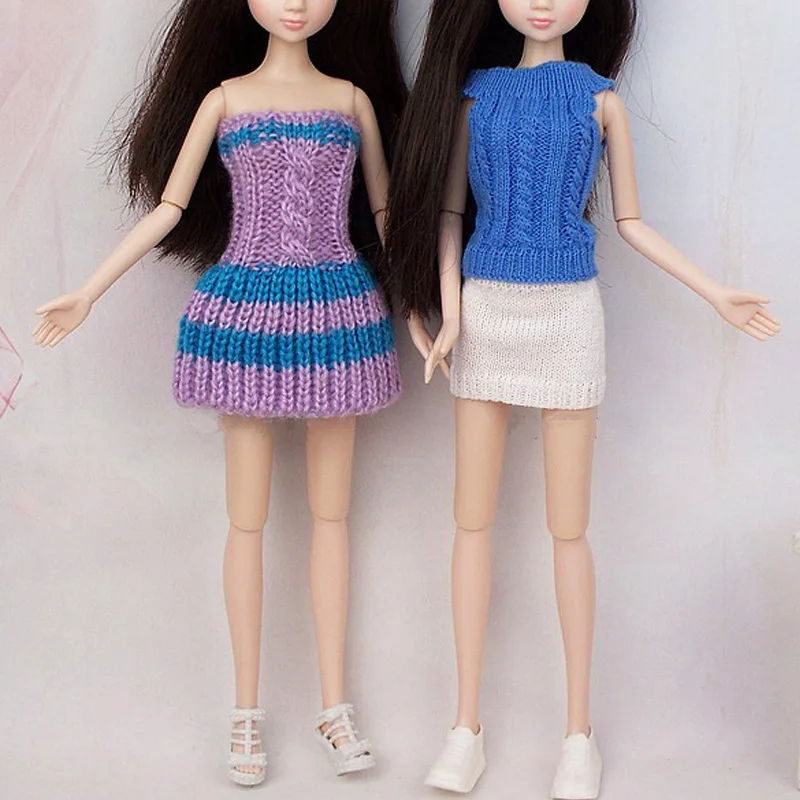 Трикотажный свитер с открытыми плечами, юбка, платье для куклы Барби, наряды, Одежда для куклы блайз, одежда для 1/6, аксессуары для куклы BJD