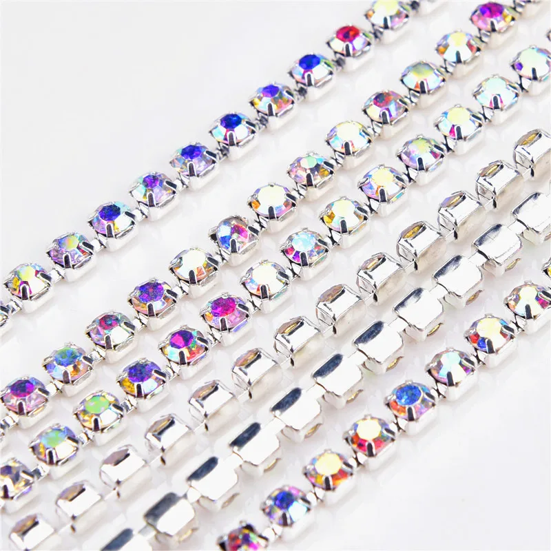 Супер близко 10 ярдов/рулон прозрачный Кристальный SS8-SS18(2 мм-6 мм) серебро/золото основа Стразы цепочка для одежды швейный стиль diy Аксессуары для красоты
