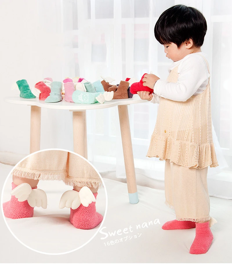 RUBU новые осенние детские носки хлопок полиэстер мальчики девочки милое крыло малыша анти-скольжение носки для От 1 до 3 лет детей цельное крыло носки
