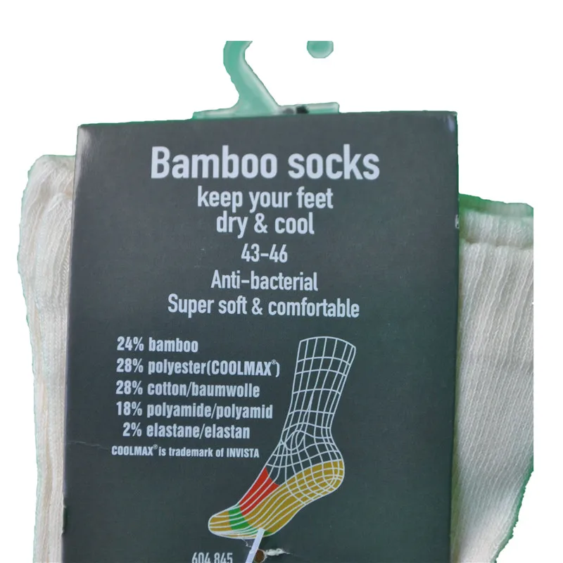 Материал: 24% бамбука, 28% Coolmax,28% хлопок, 18% Полиамид, 2% спандекс.