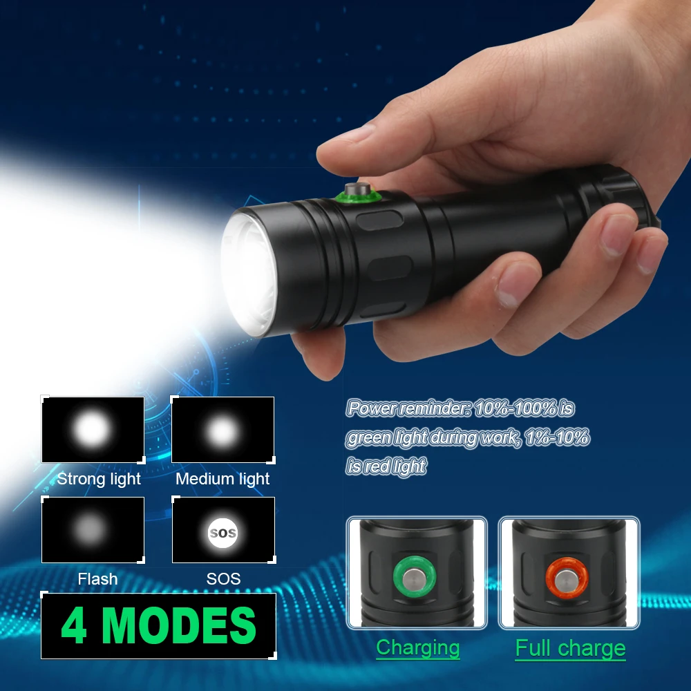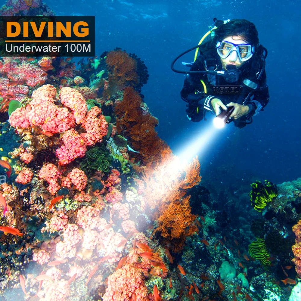 XHP50.2 супер яркий подводный 200 м IPX8 Водонепроницаемый вспышка для подводного