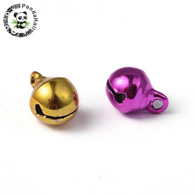 100 шт., 6x8 мм, разные цвета, латунные подвески в виде колокольчика, Красивые Рождественские Подвески, украшение, Шарм с отверстием 1,5 мм