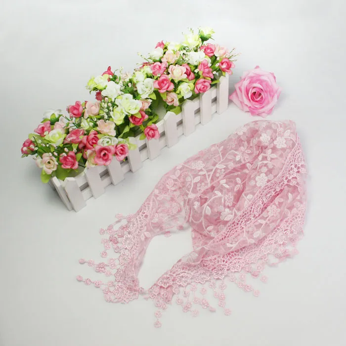 Модный кружевной шарф-шаль с кисточками и цветочным принтом