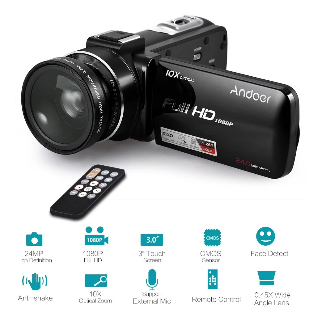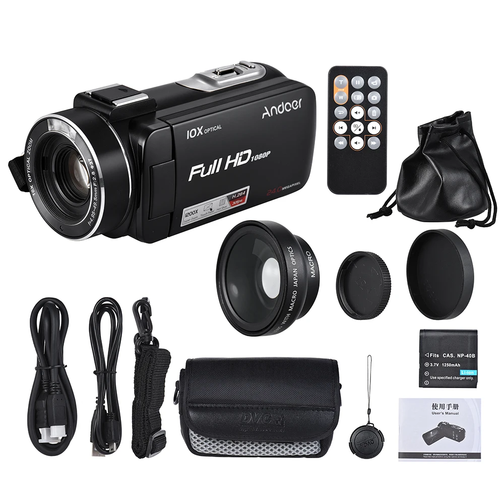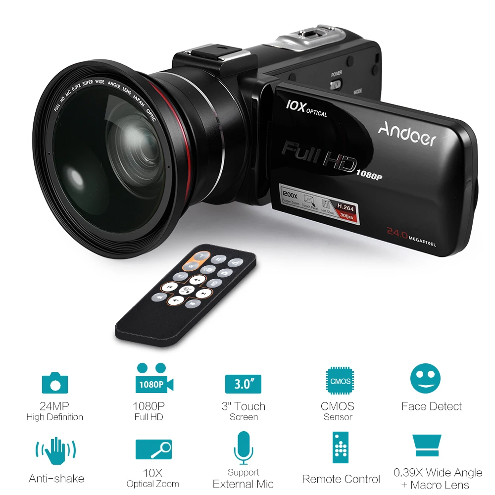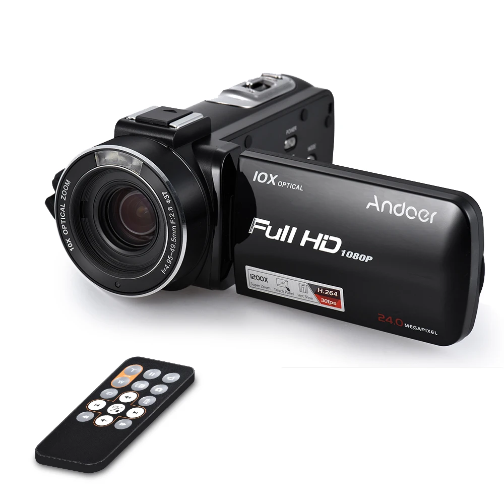 Andoer HDV-Z82 1080 P Full HD 24MP цифровая видеокамера 3 "LCD сенсорный светодиодный светильник с дистанционным управлением Поддержка 10X оптический зум анти-встряхивание распознавание лица (с широкоугольным объективом внешний микрофон)