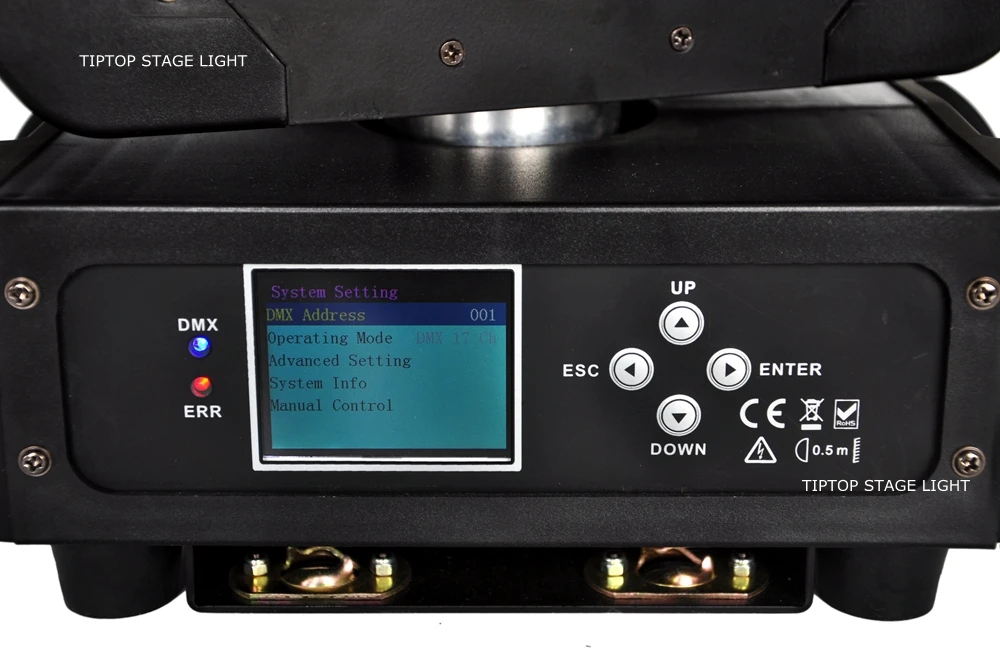 Входная мощность: AC100-240V 50/60 Гц Потребляемая мощность: 280 Вт (макс.) Подключение к питанию: IEC-10A Подключение: 3pin-XLR male/female Очень длительный срок службы: 50000 Hr и низкое потребеление энергии Светодиодный: 6 шт. 40 Вт высокой мощности RGBW светодиодный DMX канал: 10/17 каналов Зум-ангел: 4-36 ° Механизм: панорамирование/наклон: ось X 540 °, ось Y 180 ° Высокая скорость движения панорамирования/наклона, скорость движения панорамирования/наклона регулируется Режим управления: DMX512/Master-Slave/Auto run/sound Дисплей: 2,4 дюйма ЖК-дисплей Дисплей 8 Внутренняя программа, звуковой режим может управляться DXM 512 Характеристики: эта модель поддерживает функцию зума и вращение платы объектива, чтобы сделать красочный эффект луча, обратите внимание IP-Рейтинг: IP20 Вес нетто: 8,5 кг Вес брутто: 11,5 кг Размер упаковки: 44*36*32 см (1 шт/кор) Упаковочный лист для каждого блока: 1 х светодиодный светильник с подвижной головкой 1 х Кабель питания 1 x Кабель DMX 2 x зажимы 1 Руководство пользователя
