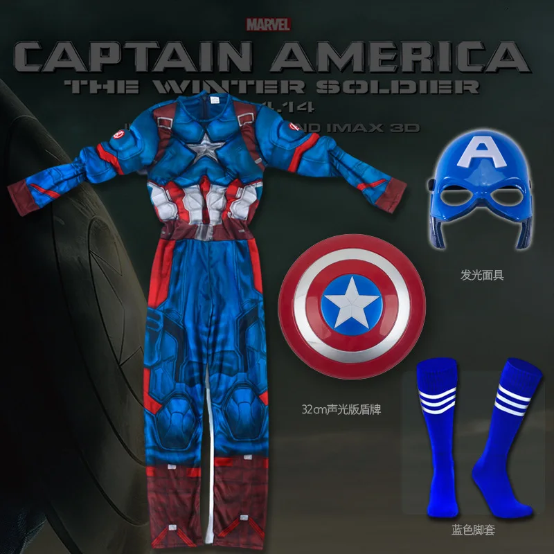 Костюм Капитана Америка для детей, костюмы на Хэллоуин для мальчиков, Детский костюм супергероя, маскарадное платье на шлем