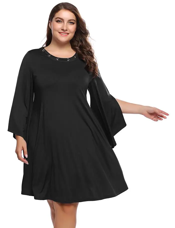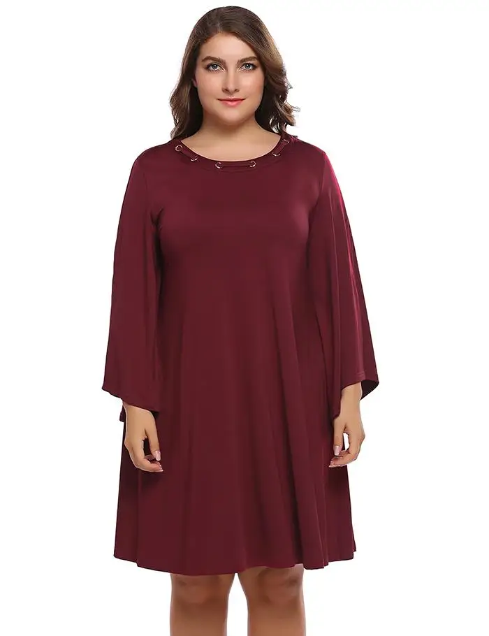 [Стиль] : IN'VOLAND/осеннее женское платье размера плюс; Модные однотонные Вечерние платья на шнуровке с круглым вырезом и длинными рукавами; Feminino Vestidos; Большие размеры