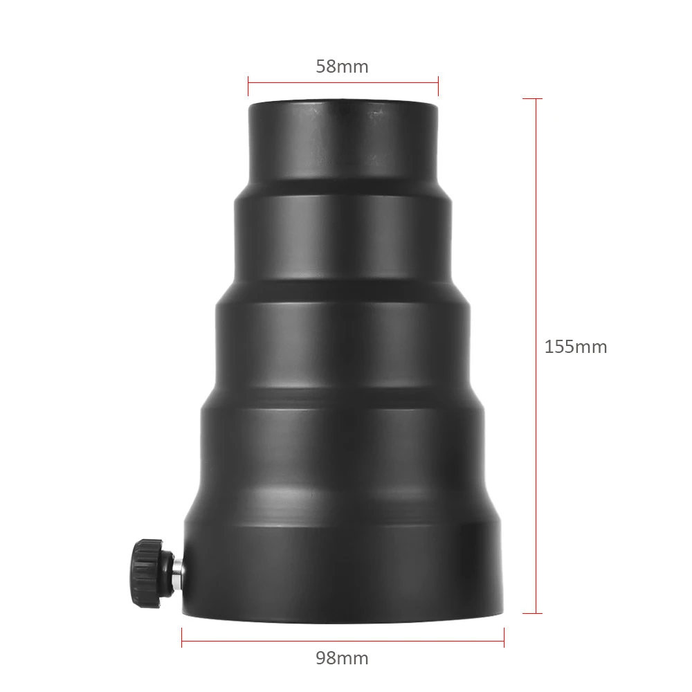 Мини-вспышка Andoer 98 мм snoot предназначена для того, чтобы помочь вам Сфокусировать свет и точно определить детали продукта.